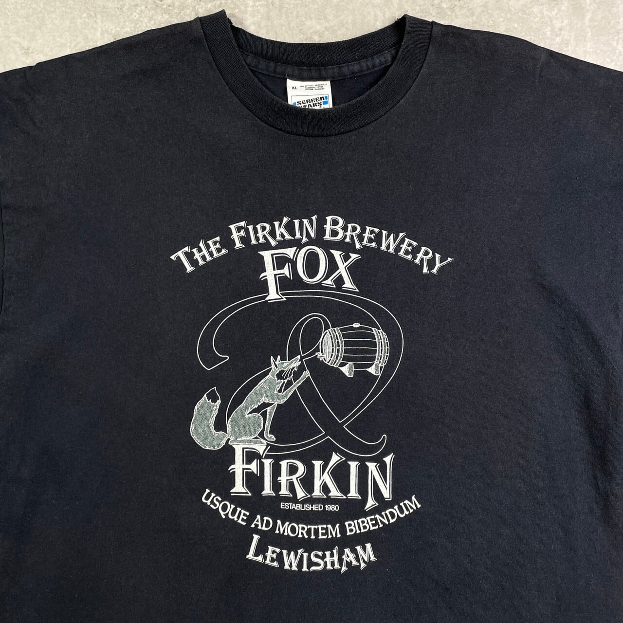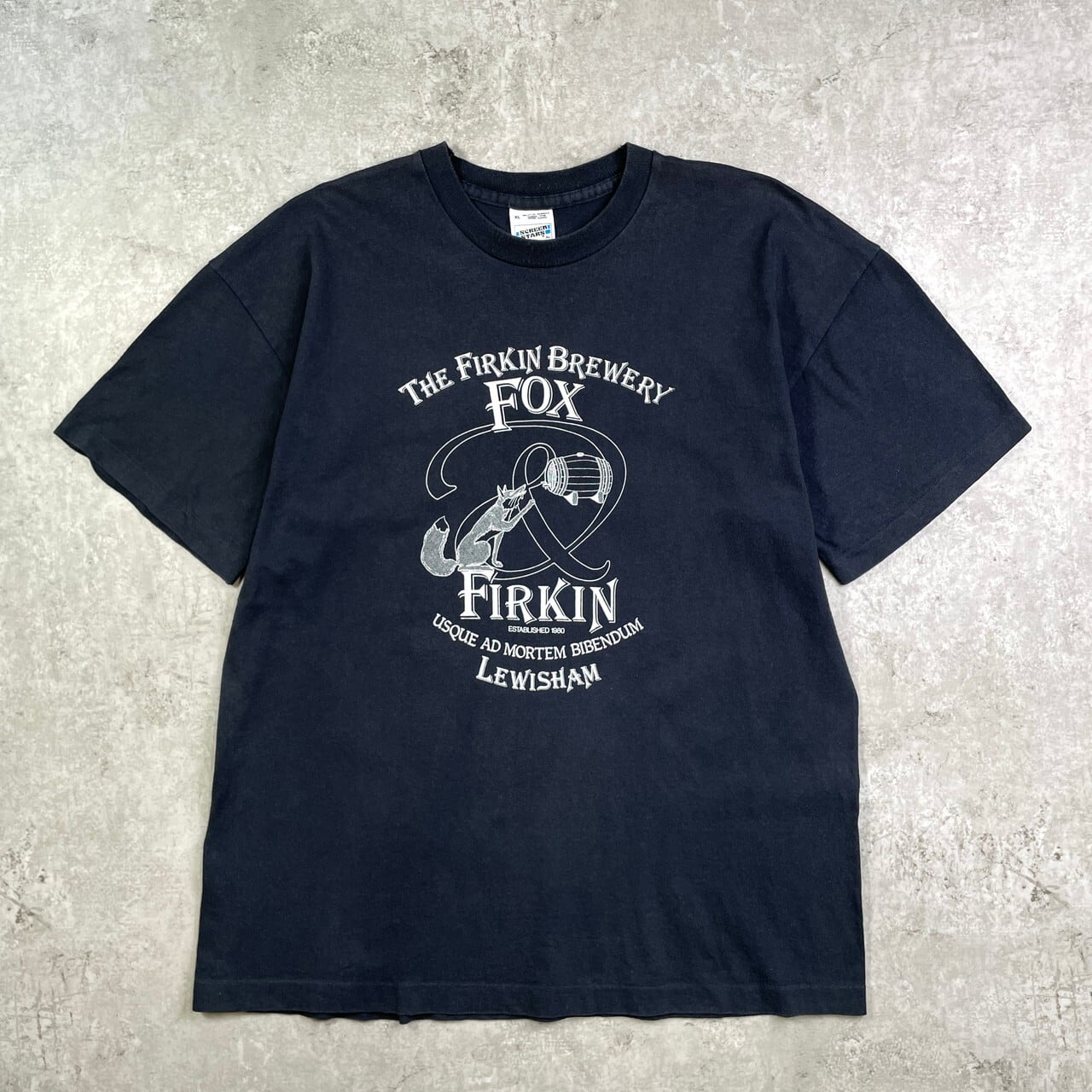 ■90年代 THE FIRKIN BREWERY FOX ビール 企業ロゴプリントTシャツ アドバタイジング アニマル キツネ メンズXL 古着 90s VINTAGE ヴィンテージ 両面プリント シングルステッチ 黒【Tシャツ】/ブラック