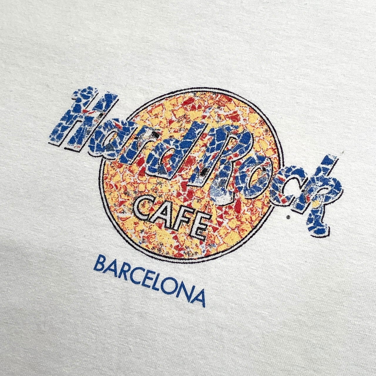 ■90年代 HARD ROCK CAFE BARCELONA ハードロックカフェ バルセロナ アートデザイン プリントTシャツ メンズL 古着 90s VINTAGE ヴィンテージ 白色【Tシャツ】/ホワイト