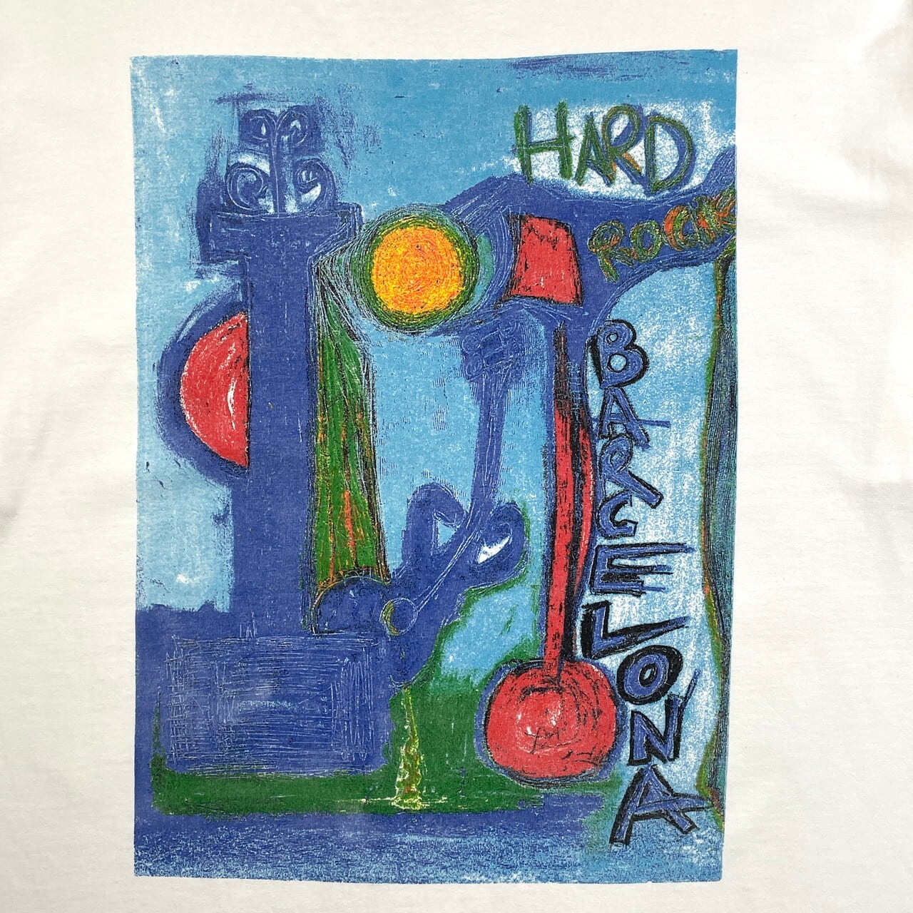 90年代 HARD ROCK CAFE BARCELONA ハードロックカフェ バルセロナ アートデザイン プリントTシャツ メンズL 古着 90s VINTAGE ヴィンテージ 白色【Tシャツ】/ホワイト