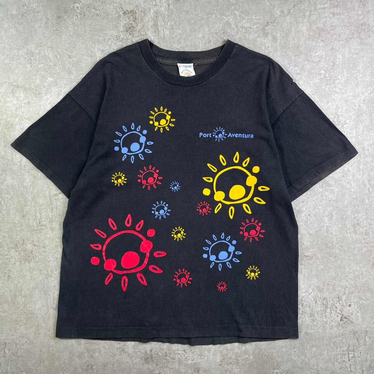 ■90年代 Port Aventura スーベニア アートプリントTシャツ メンズXL 古着 90s VINTAGE ヴィンテージ シングルステッチ 黒色【Tシャツ】/ブラック