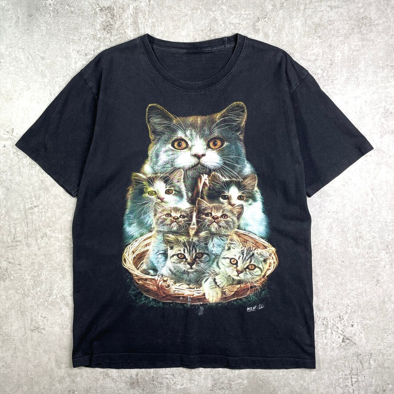WILD COPYRIGHT アニマルプリントTシャツ 猫 キャット メンズXL相当 古着 ネコ 黒色【Tシャツ】/ブラック