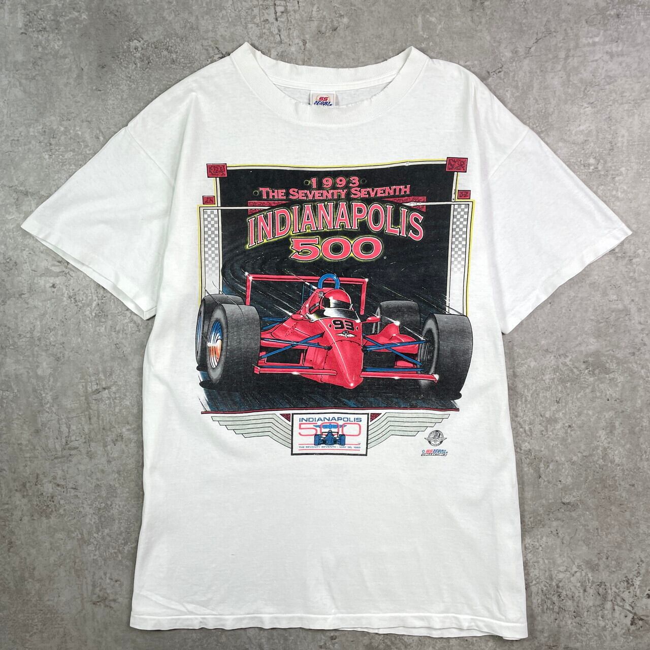 ■90年代 USA製 INDIANAPOLIS 500 モーターサイクル レーシング プリントTシャツ メンズL 古着 90s ヴィンテージ VINTAGE シングルステッチ 白色【Tシャツ】/ホワイト