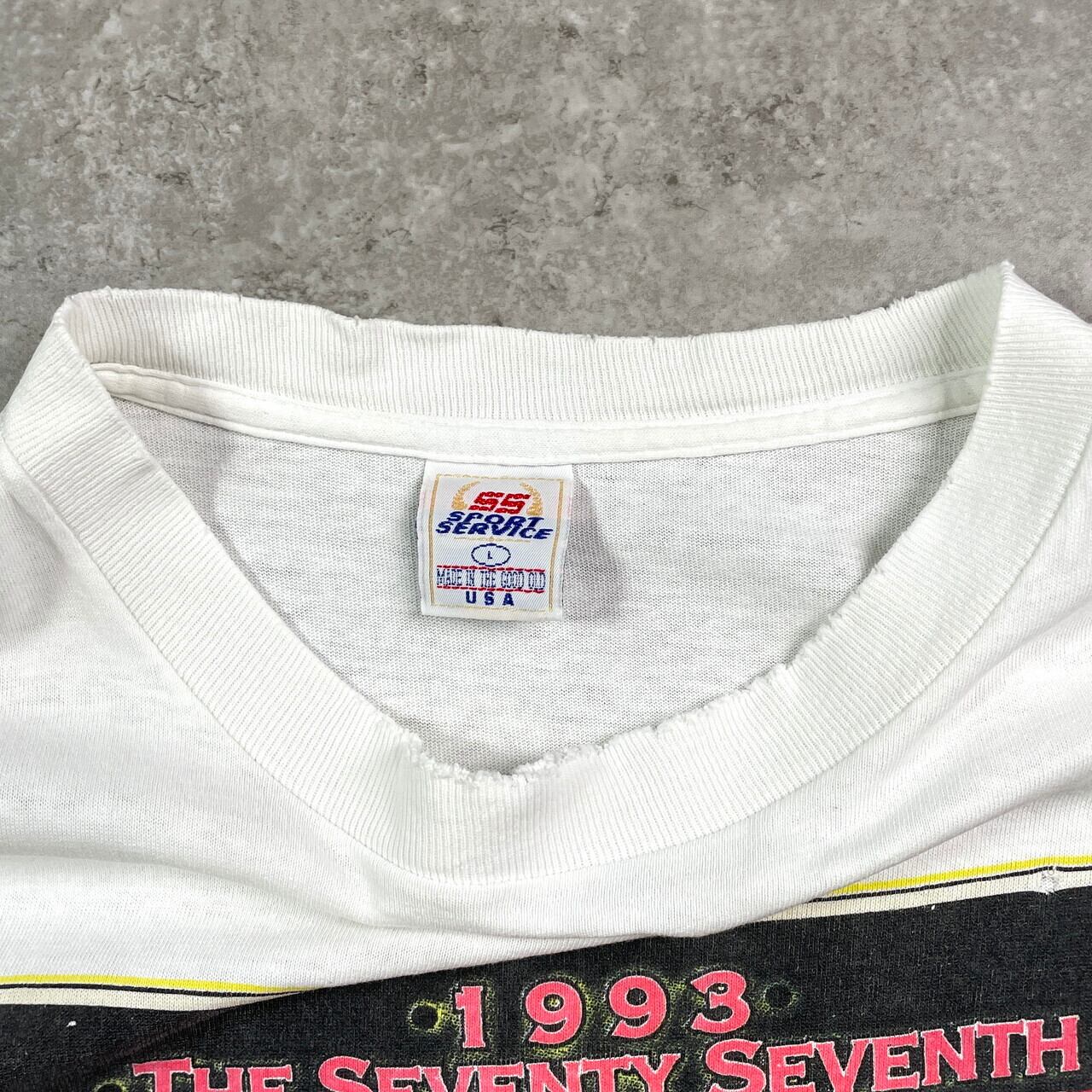 90年代 USA製 INDIANAPOLIS 500 モーターサイクル レーシング プリントTシャツ メンズL 古着 90s ヴィンテージ VINTAGE シングルステッチ 白色【Tシャツ】/ホワイト【SS50】
