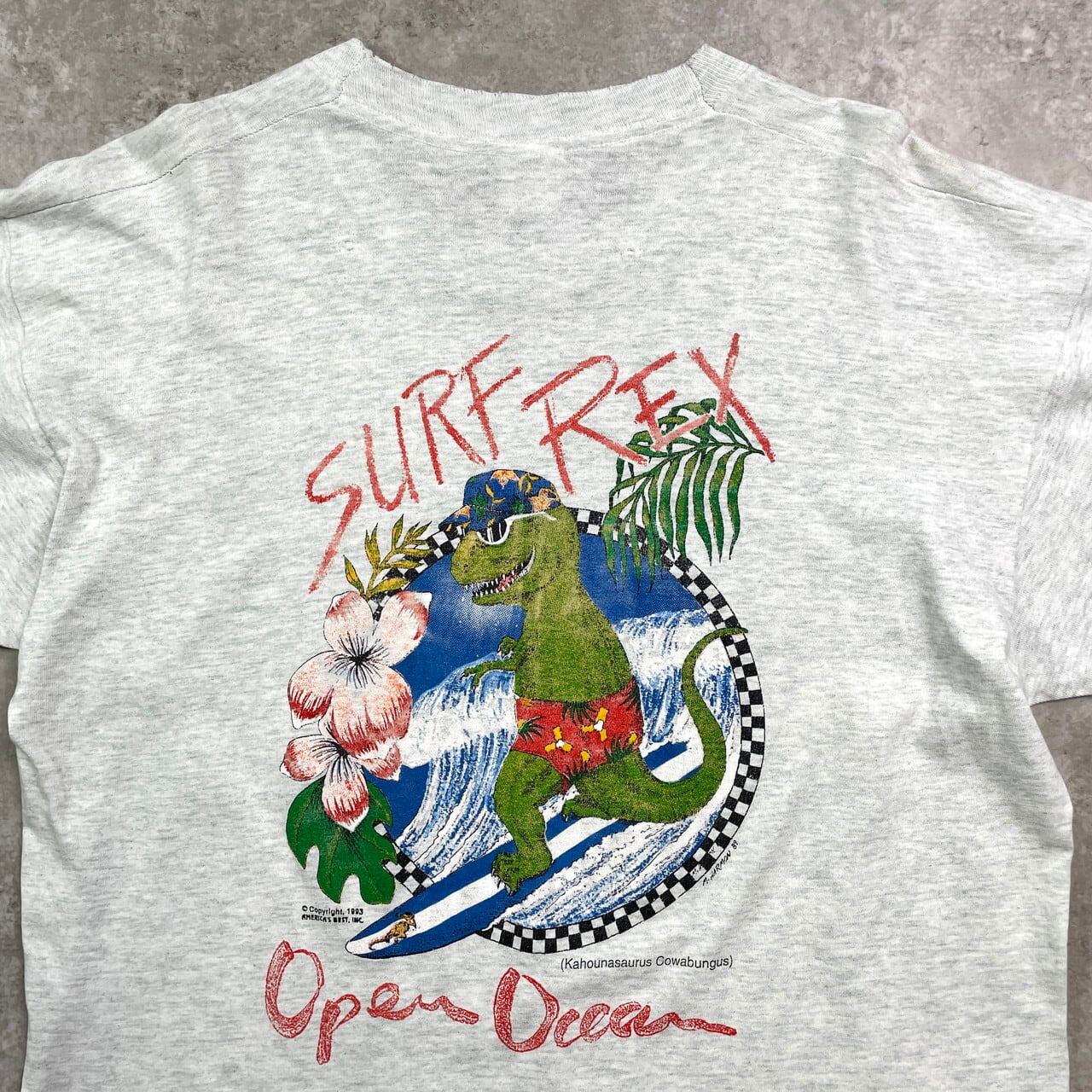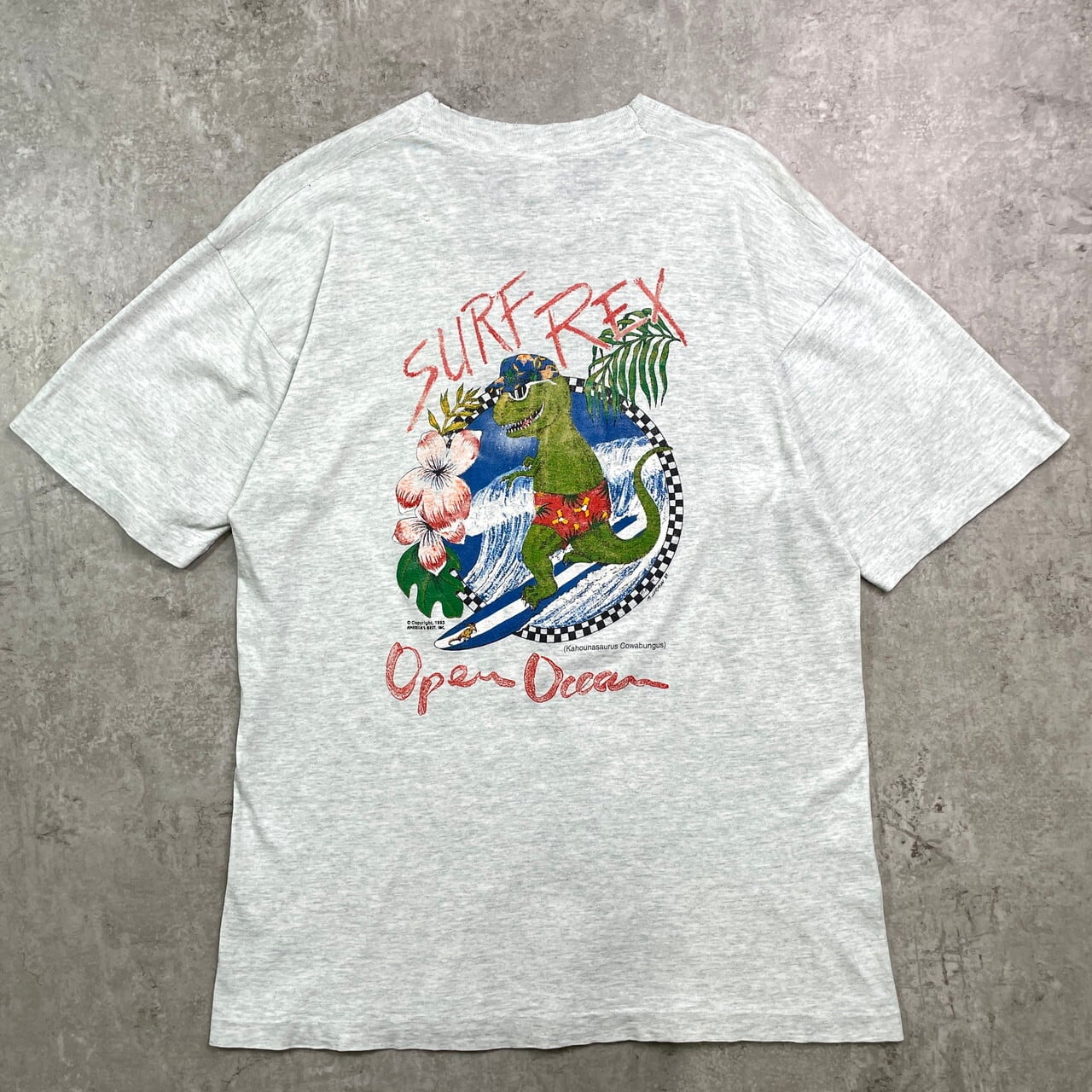 ■90年代 USA製 SURF REX サーフ プリントTシャツ メンズL 古着 90s ヴィンテージ VINTAGE シングルステッチ【Tシャツ】/グレー