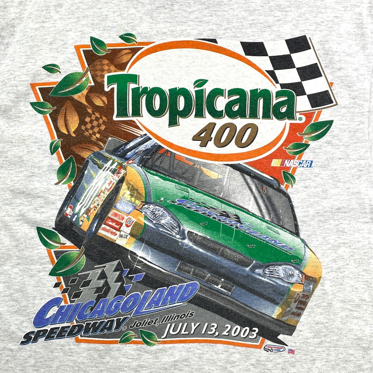 00年代 Tropicana 400 モーターサイクル レース プリントTシャツ メンズL 古着 00s Y2K ヴィンテージ VINTAGE 杢グレー【Tシャツ】/グレー【SS50】