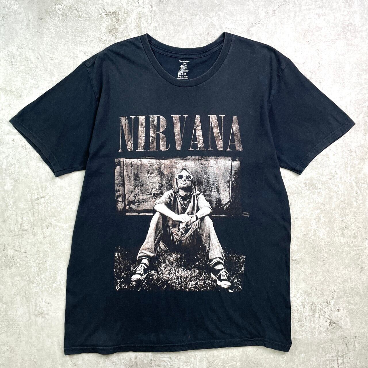 NIRVANA ニルヴァーナ カート コバーン バンドTシャツ バンT Calvin Klein メンズL 古着 フォトT フォトプリント リプリント カルバンクライン 黒色【Tシャツ】/ブラック