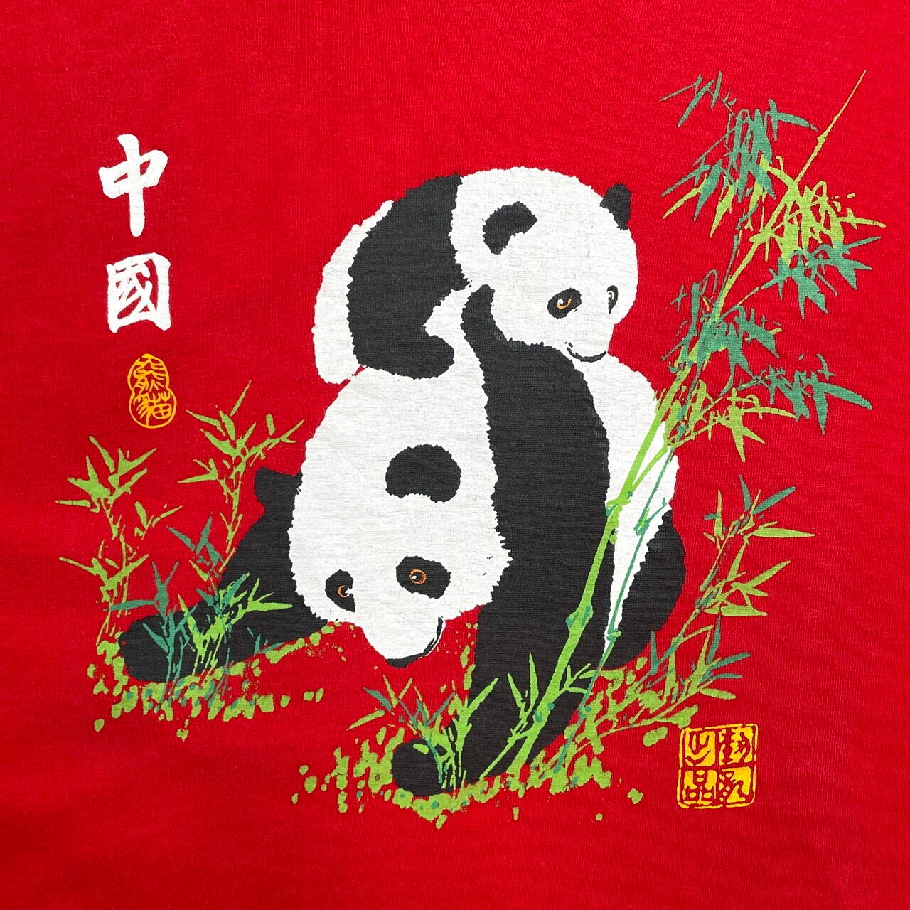 90年代 パンダ アニマルプリントTシャツ メンズXL相当 古着 90s VINTAGE ヴィンテージ 漢字 赤色【Tシャツ】/レッド【SS50】