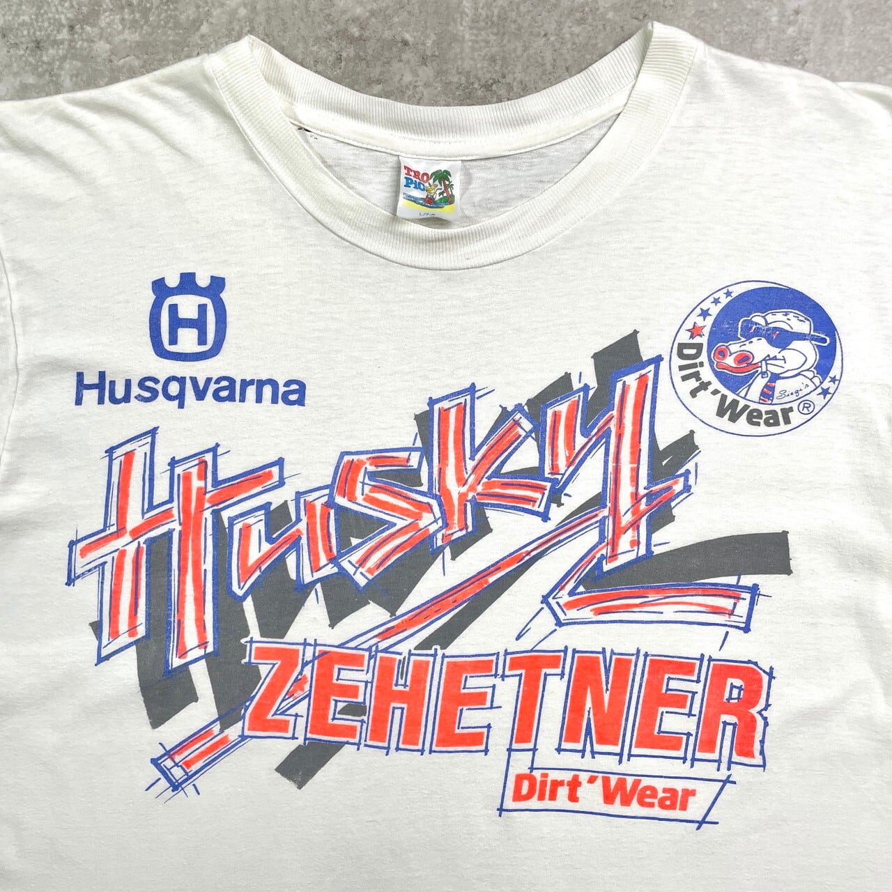 ■90年代 Husqvarna モーターサイクル プリントTシャツ メンズM相当 古着 90s ヴィンテージ VINTAGE シングルステッチ 白色【Tシャツ】/ホワイト