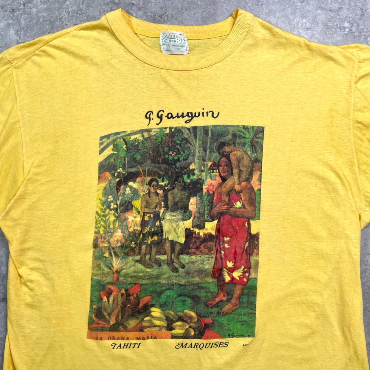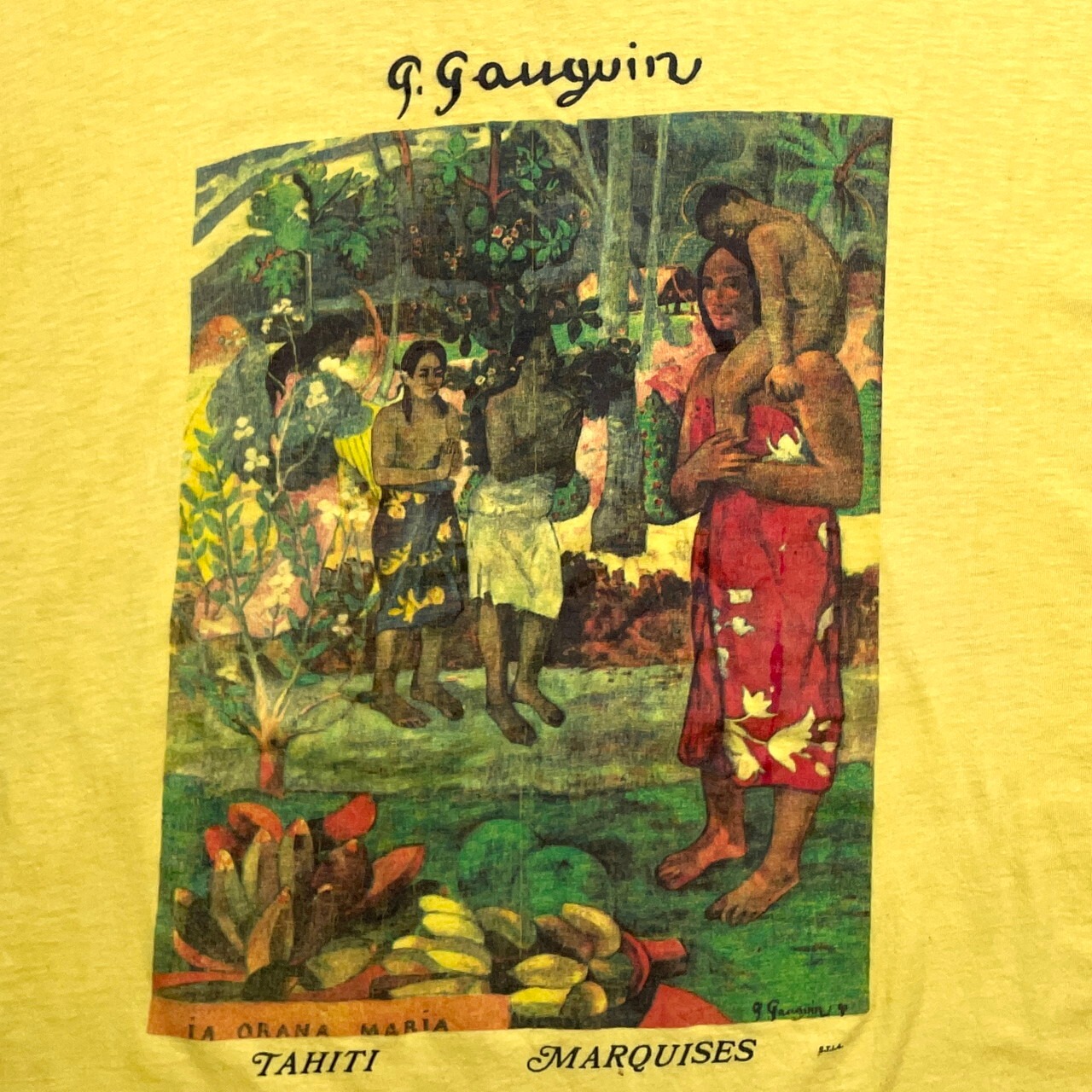■90年代 Paul Gauguin ポール・ゴーギャン アートプリントTシャツ メンズXL相当 古着 90s ヴィンテージ VINTAGE シングルステッチ 黄色【Tシャツ】/イエロー