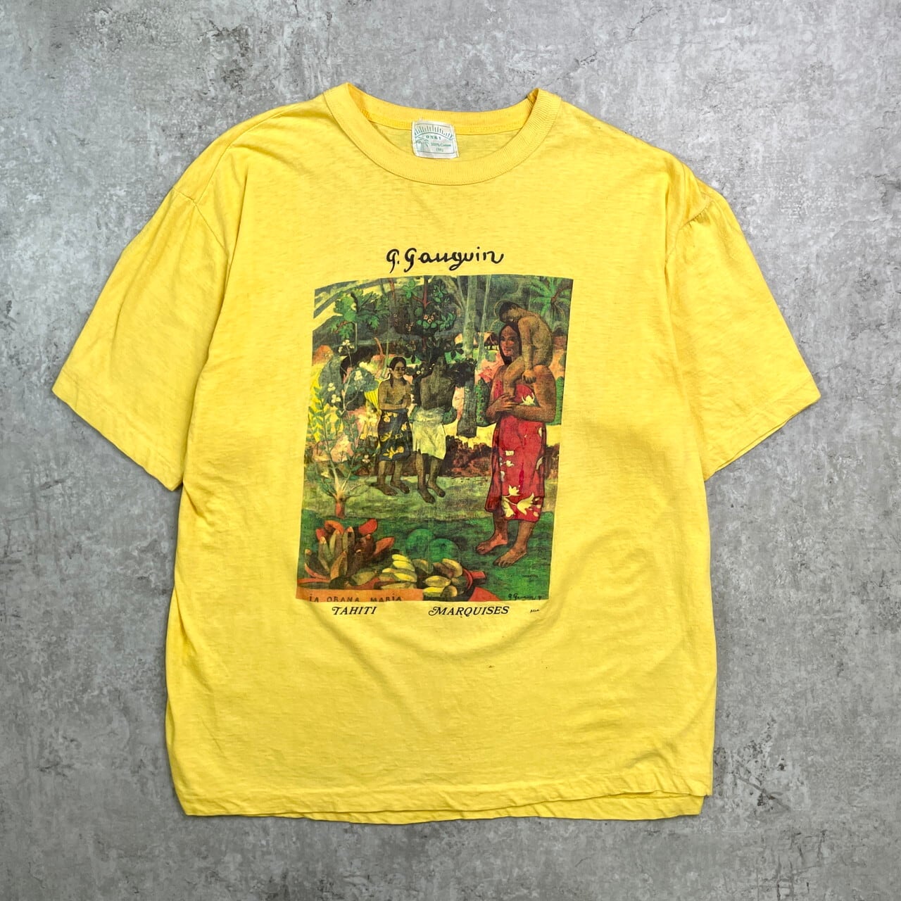 90年代 Paul Gauguin ポール・ゴーギャン アートプリントTシャツ メンズXL相当 古着 90s ヴィンテージ VINTAGE シングルステッチ 黄色【Tシャツ】/イエロー【SS30】