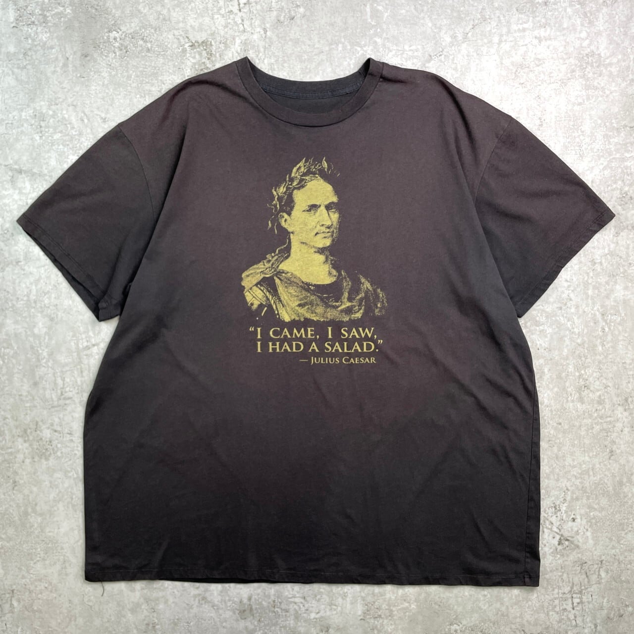 JULIUS CAESAR ユリウス カエサル 偉人 プリントTシャツ メンズXL相当 古着 人物 パロディ フェードブラック 墨黒【Tシャツ】/ブラック【SS50】