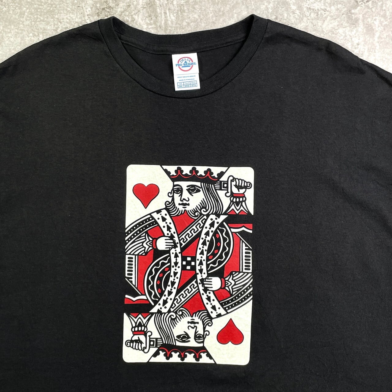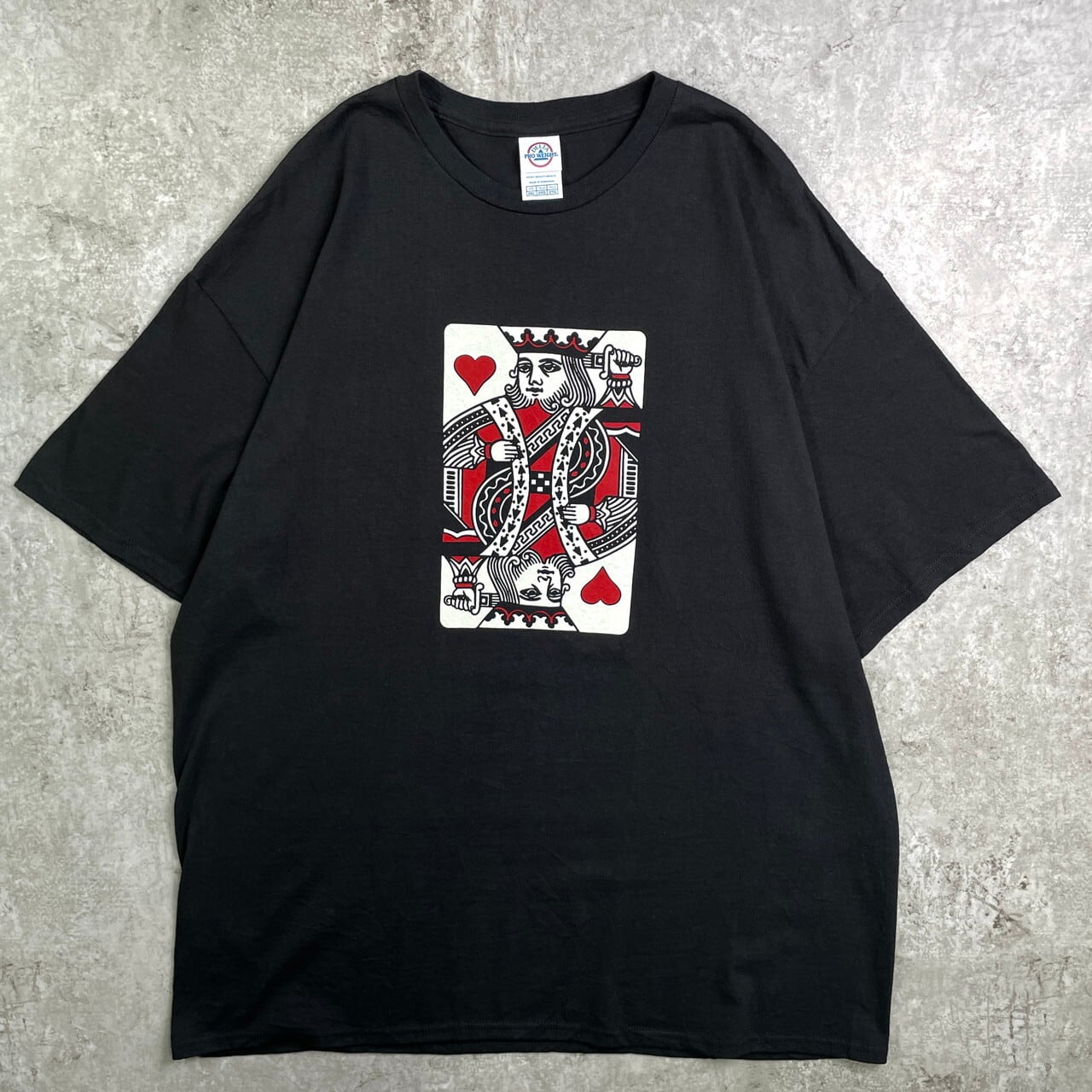 ■トランプ ハートのキング プリントTシャツ メンズ2XL 古着 黒【Tシャツ】/ブラック