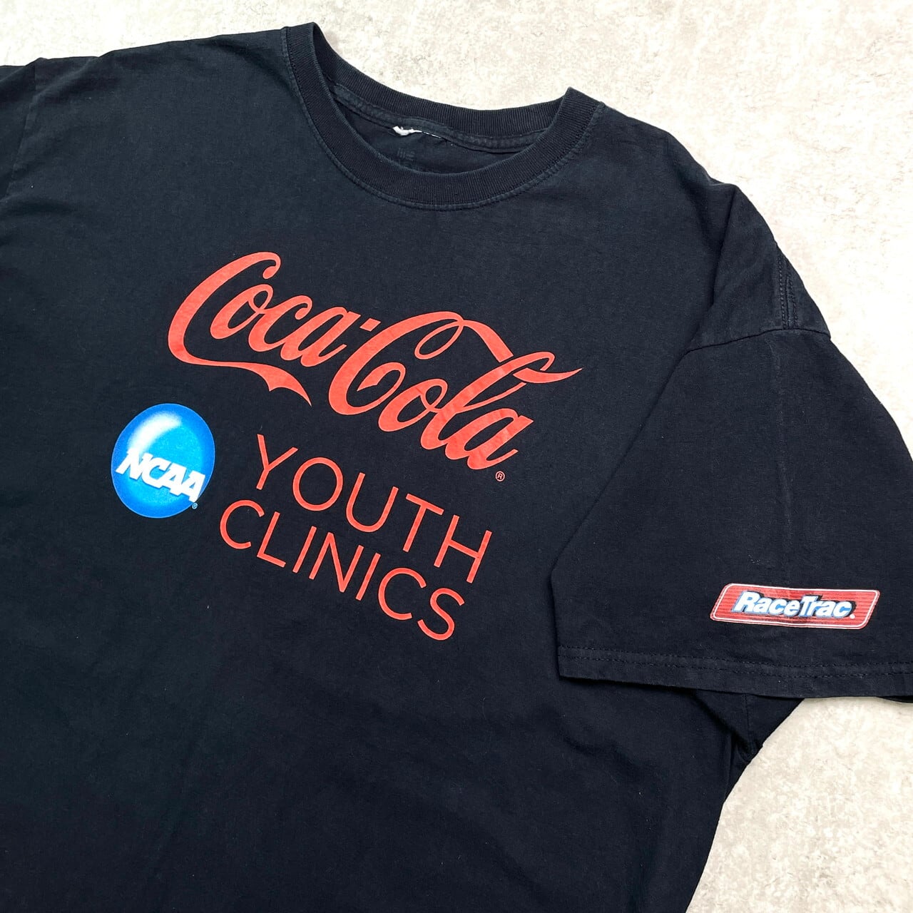 ■Coca-Cola コカ・コーラ アドバタイジング 企業ロゴ プリントTシャツ メンズ2XL 古着 黒色【Tシャツ】/ブラック
