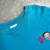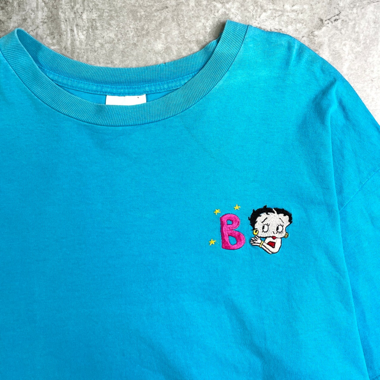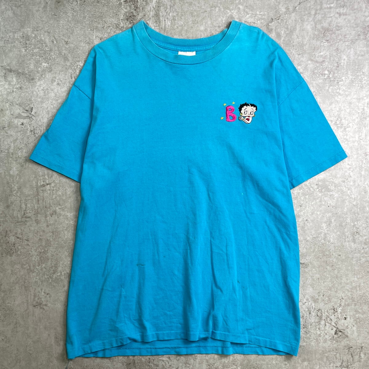 90年代 USA製 BETTY BOOP ベティーちゃん キャラクター ワンポイント刺繍 Tシャツ メンズXL レディース 古着 90s VINTAGE ヴィンテージ シングルステッチ 水色 【Tシャツ】ブルー【SS50】