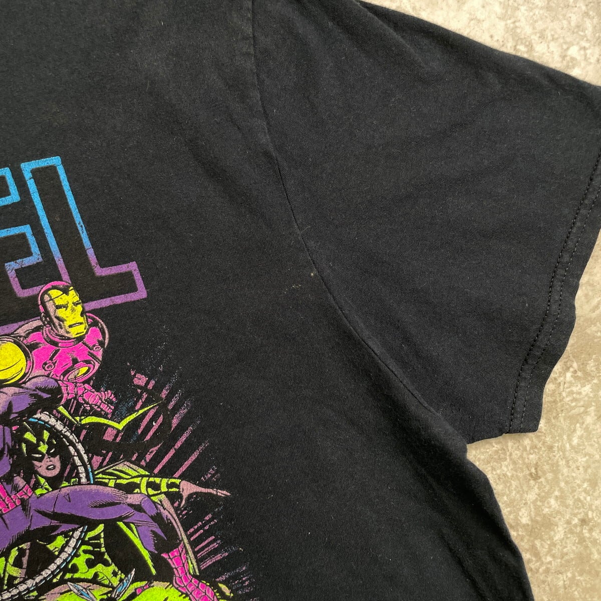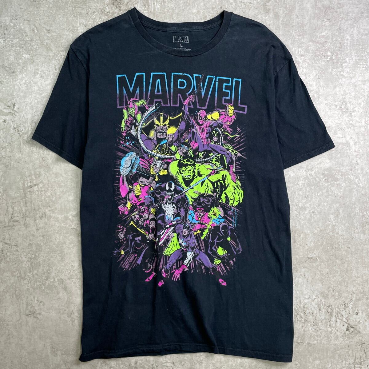 MARVEL マーベル ヒーローズ キャラクタープリント Tシャツ メンズL 古着 映画 ムービー コミック アメコミ 黒【Tシャツ】/ブラック【SS50】