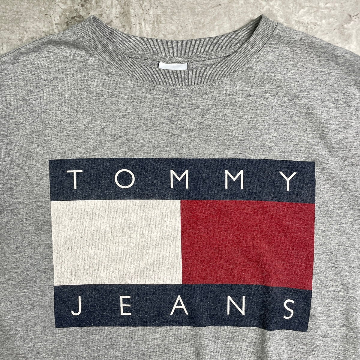 90年代 TOMMY JEANS トミージーンズ ロゴプリント Tシャツ メンズM 古着 90s VINTAGE ヴィンテージ TOMMY HILFIGER 灰色【Tシャツ】グレー【SS50】