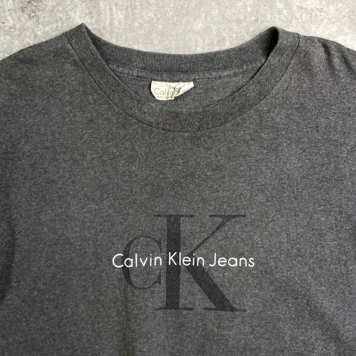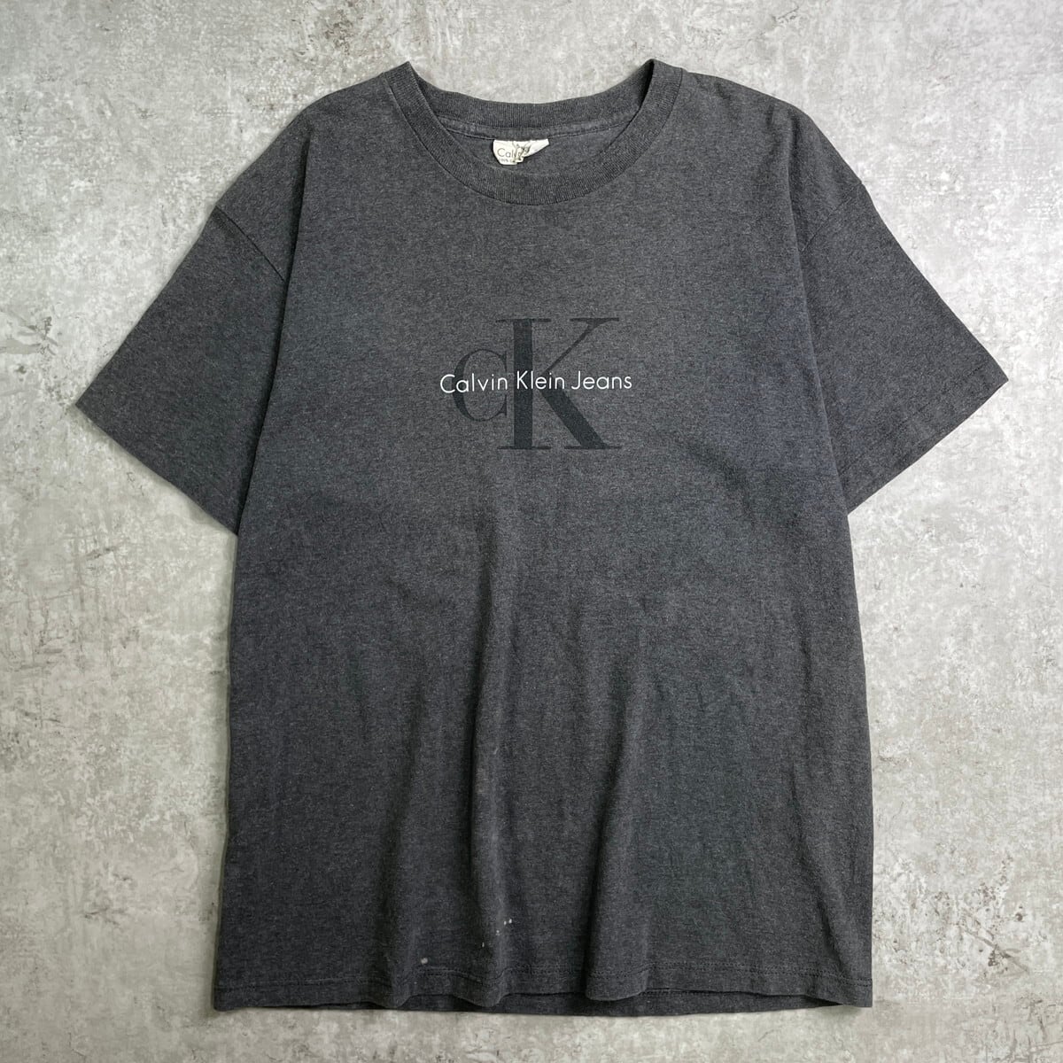 90年代 USA製 Calvin Klein カルバンクライン CK ロゴプリント Tシャツ メンズM 古着 90s ヴィンテージ VINTAGE 袖シングルステッチ フェードブラック【Tシャツ】ブラック【SS50】