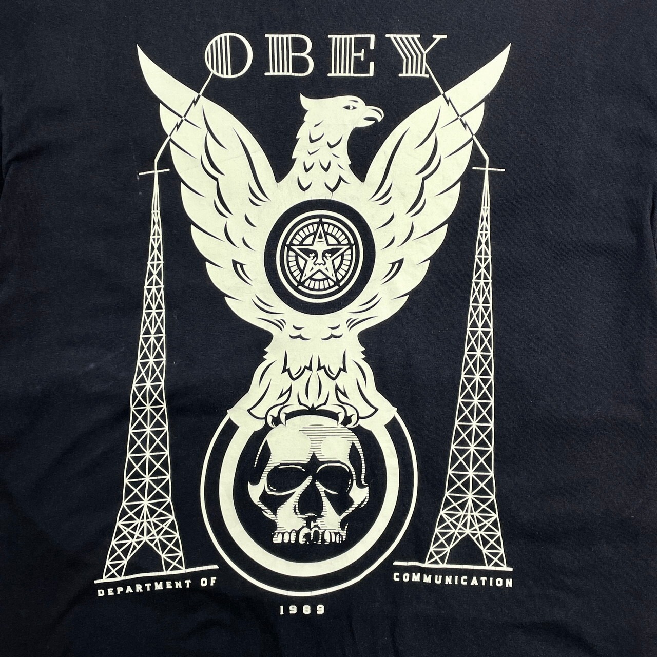 OBEY オベイ スカルイーグル ロゴプリントTシャツ メンズXL相当 古着 スケート ストリート 黒【Tシャツ】/ブラック