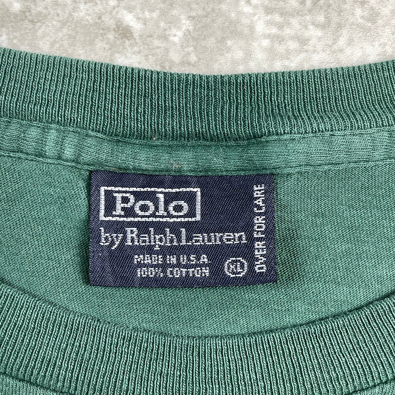 90年代 USA製 Polo by Ralph Lauren ポロバイラルフローレン ワンポイントロゴ刺繍 ポケットTシャツ ポケT メンズXL 古着 90s ヴィンテージ VINTAGE シングルステッチ 緑【Tシャツ】/グリーン【SS50】