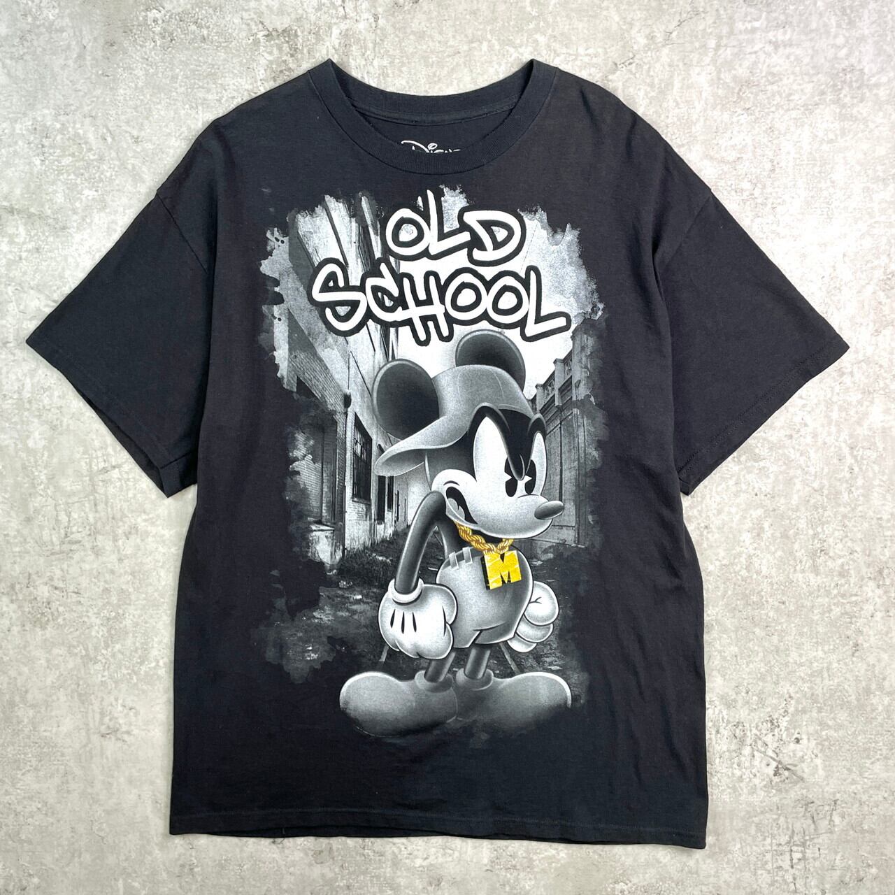 MICKEY MOUSE ミッキーマウス OLD SCHOOOL キャラクタープリント Tシャツ メンズXL 古着 Disney ディズニー ストリート HIPHOP ヒップホップ 黒【Tシャツ】/ブラック