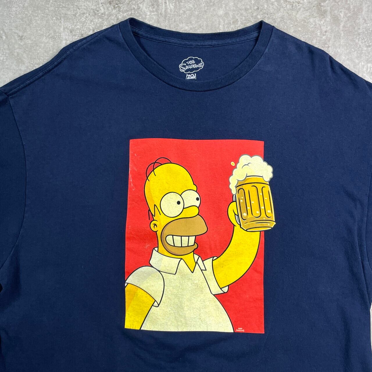 THE SIMPSONS シンプソンズ ホーマー キャラクタープリントTシャツ メンズ2XL 古着 ビール ビッグサイズ 大きいサイズ 紺色【Tシャツ】/ネイビー【SS50】