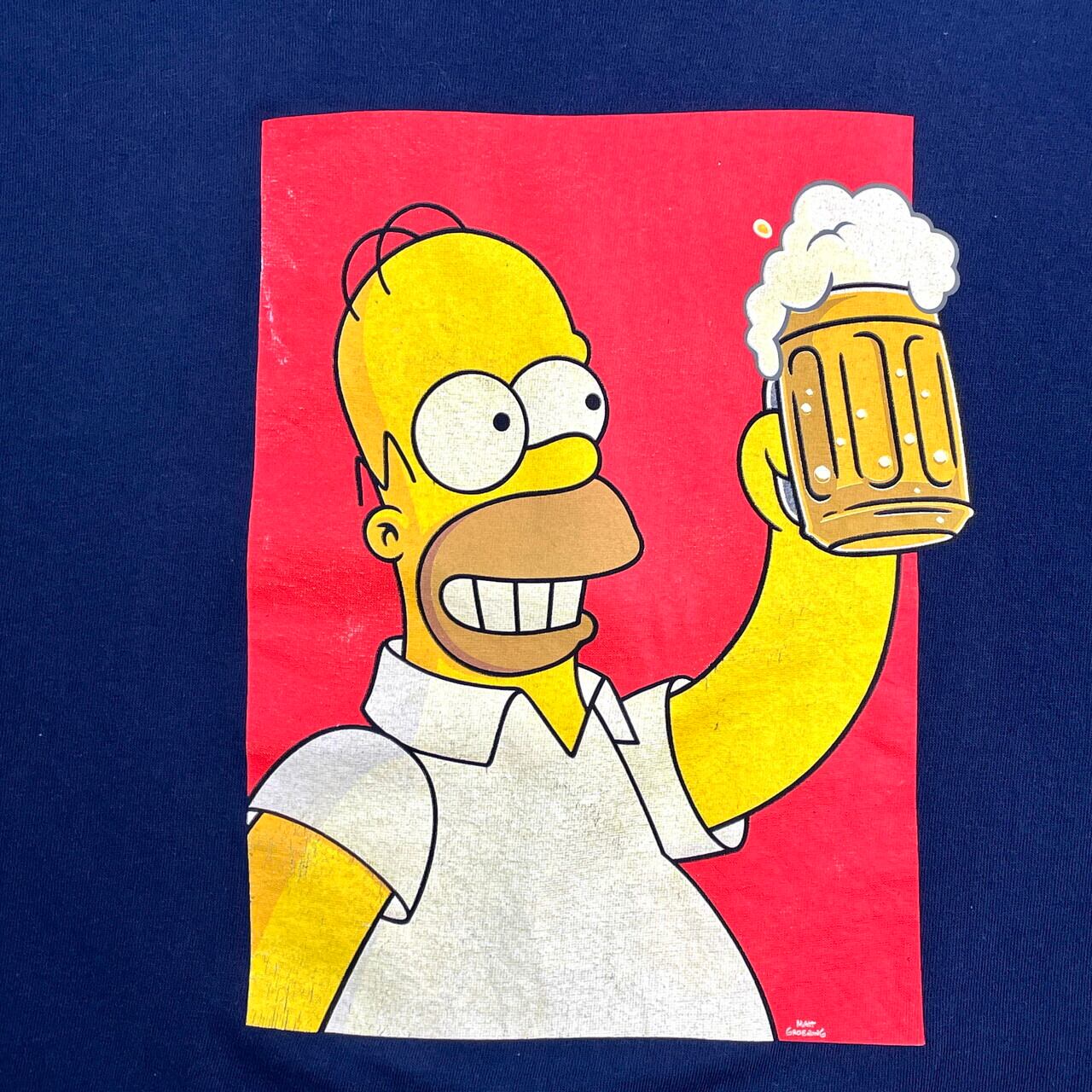 ■THE SIMPSONS シンプソンズ ホーマー キャラクタープリントTシャツ メンズ2XL 古着 ビール ビッグサイズ 大きいサイズ 紺色【Tシャツ】/ネイビー