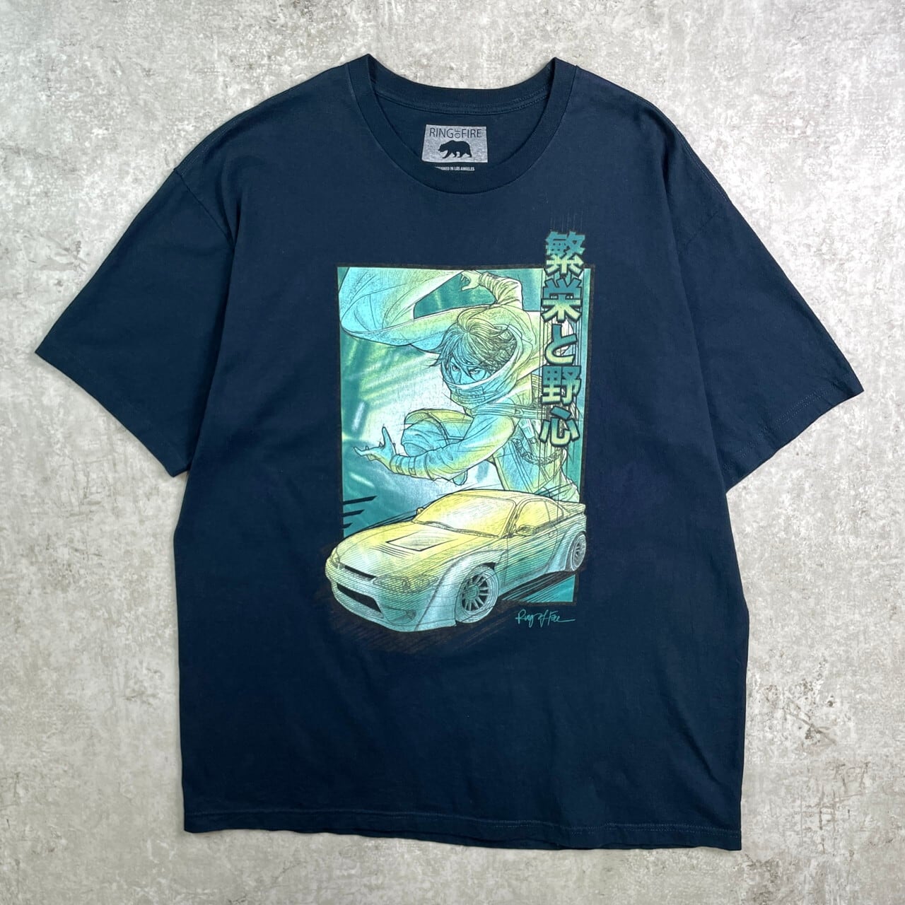 ■繁栄と野心 アニメ キャラクター プリントTシャツ メンズ2XL 古着 ビッグサイズ 大きいサイズ 紺色【Tシャツ】/ネイビー