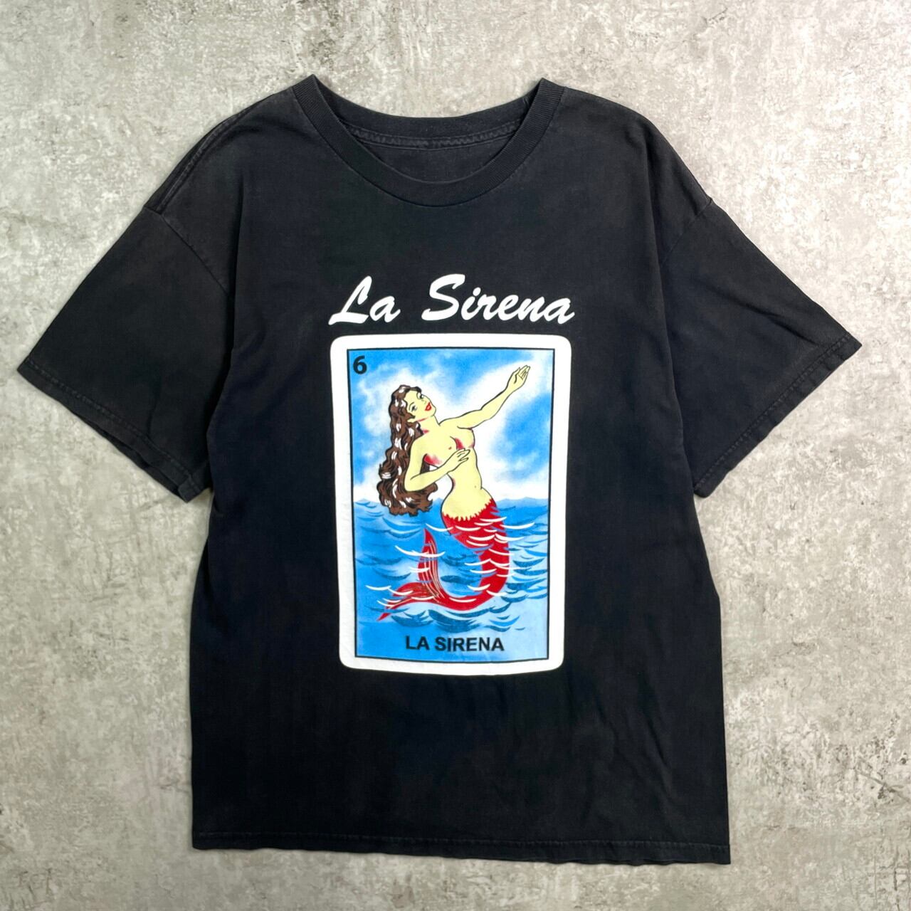 La Sirena マーメイド エロT プリントTシャツ メンズL相当 古着 黒色【Tシャツ】/ブラック