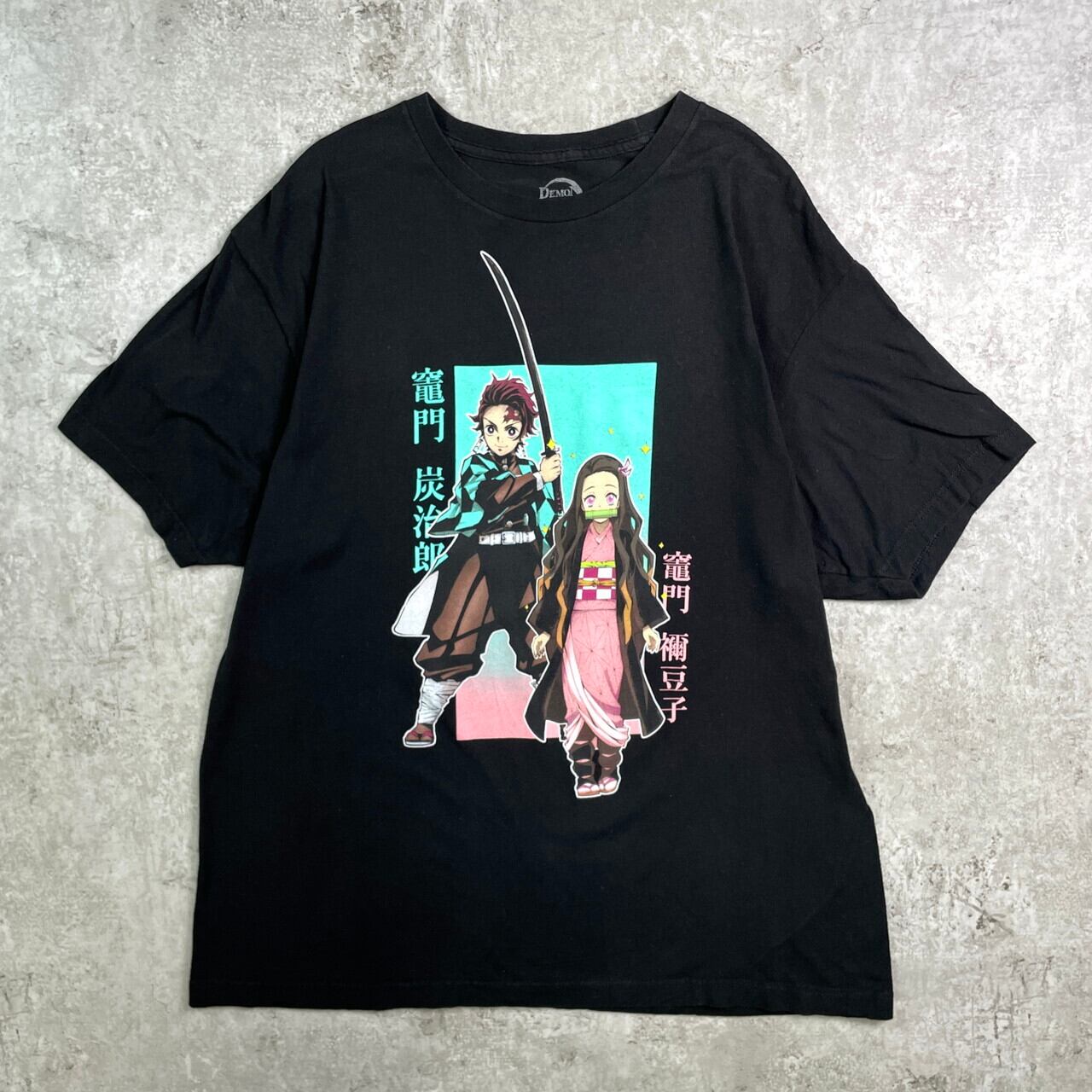 ■鬼滅の刃 DEMON SLAYER 竈門 炭治郎 ねずこ アニメ キャラクター プリントTシャツ メンズ2XL 古着 マンガ 漫画 映画 ムービー 黒【Tシャツ】/ブラック
