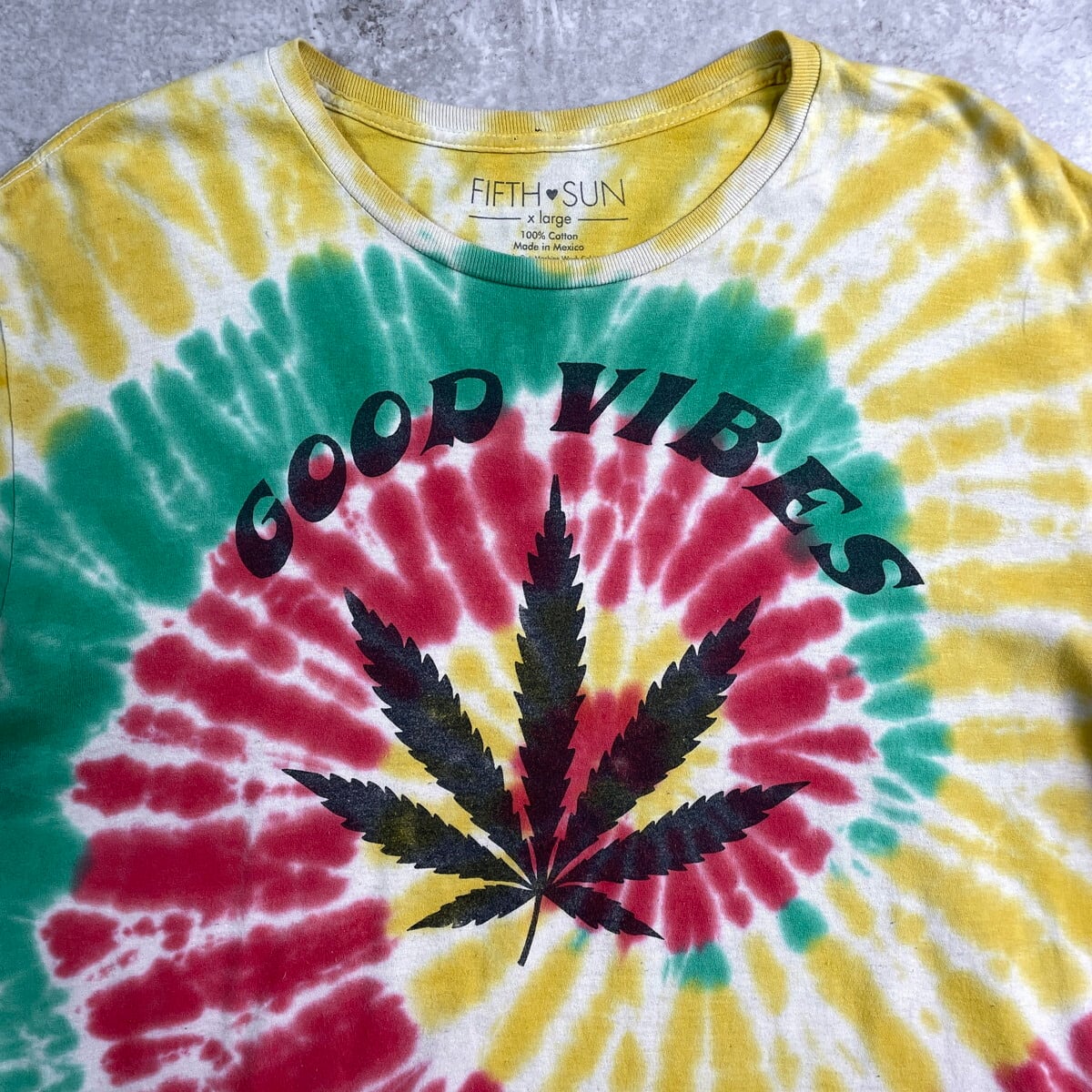 ■GOOD VIBES マリファナ タイダイ アートプリントTシャツ メンズXL 古着 ガンジャ WEED 【Tシャツ】/マルチカラー