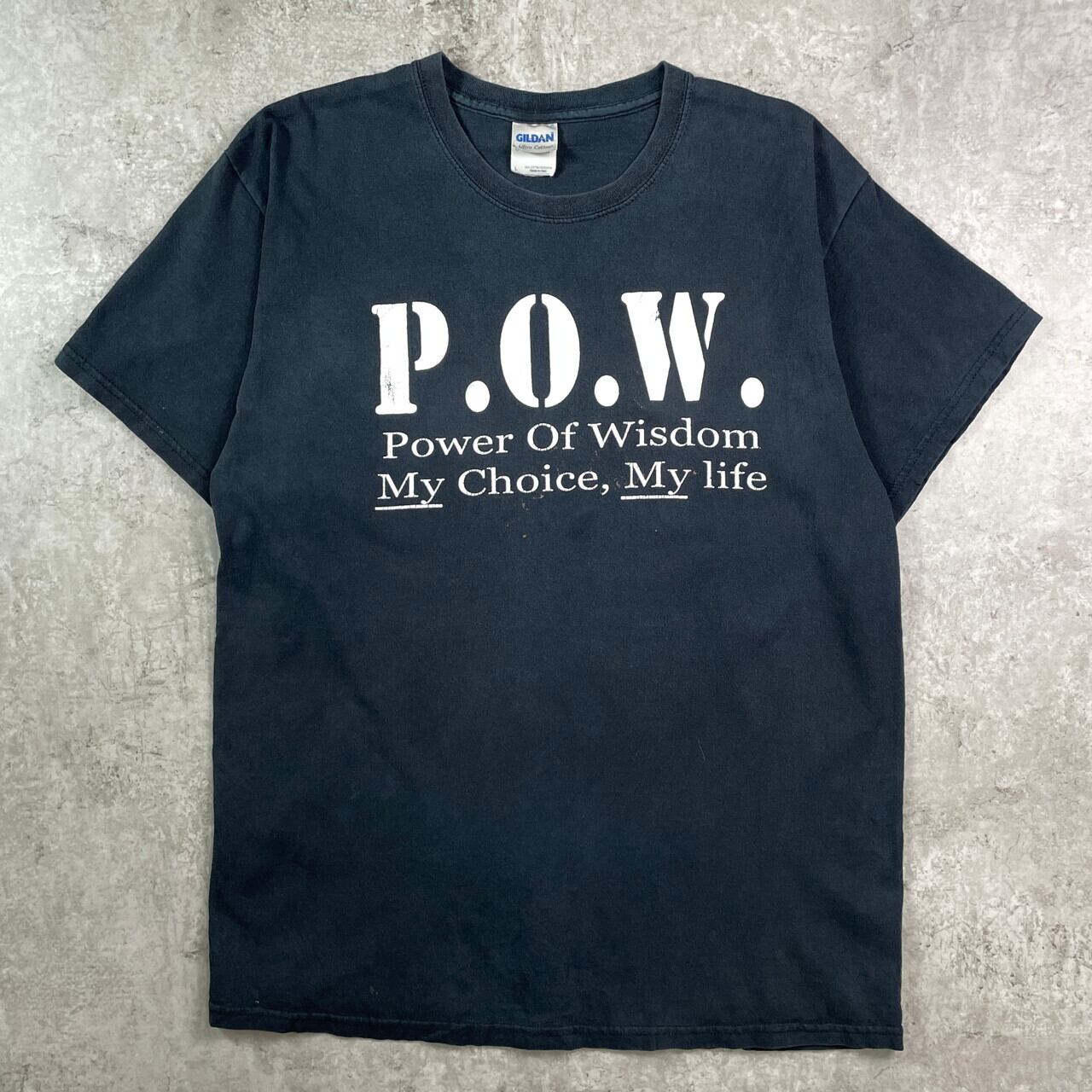 ■P.O.W メッセージ プリントTシャツ メンズL 古着 黒【Tシャツ】/ブラック