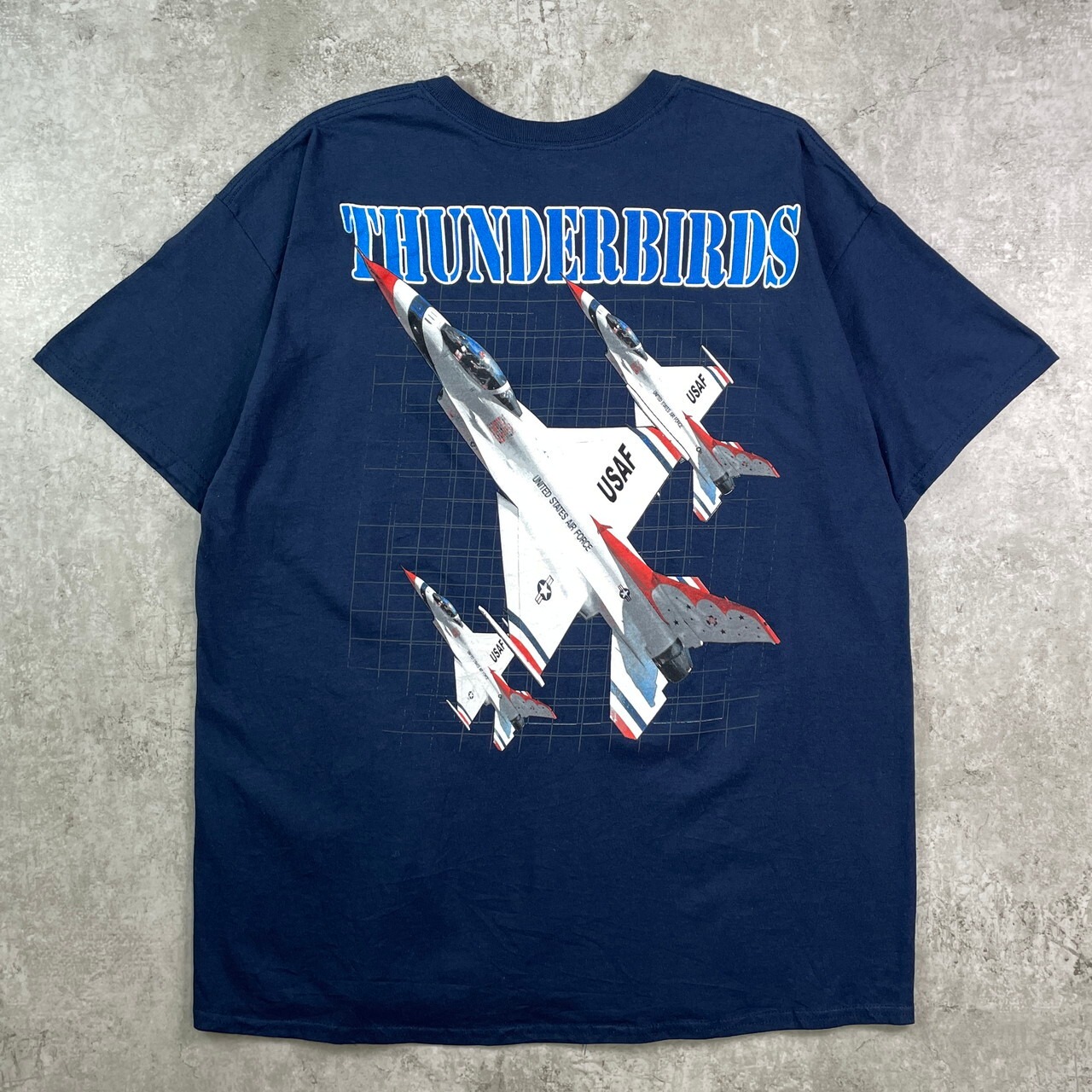 ■THUNNDERBIRDS サンダーバーズ USAF プリントTシャツ メンズXL 古着 飛行機 紺色【Tシャツ】/ネイビー
