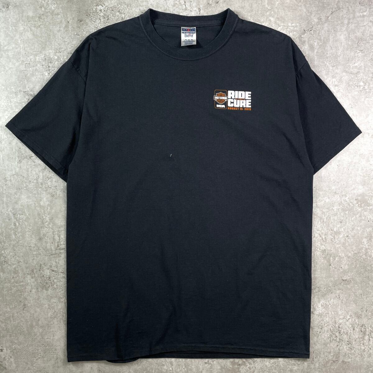 RIDE FOR THE CURE MDA 企業ロゴ プリントTシャツ メンズXL 古着 HARLEY DAVIDSON ハーレーダビッドソン スポンサーロゴ 黒色【Tシャツ】/ブラック【SS50】