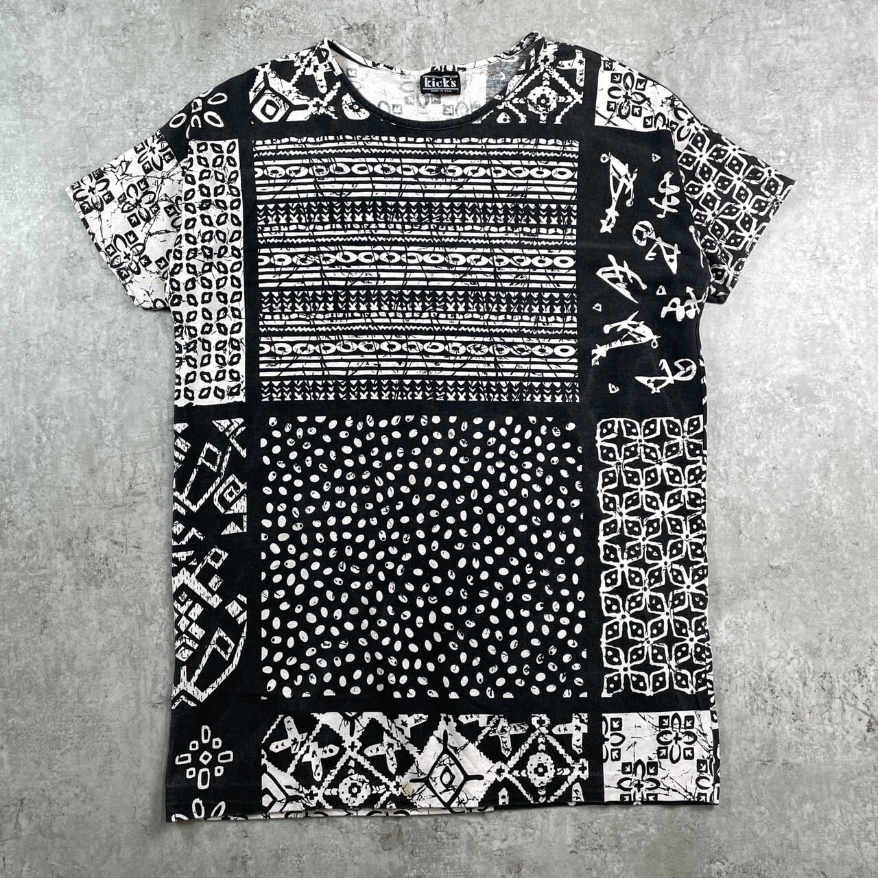 90年代 USA製 Kick's オールオーバープリントTシャツ 総柄 メンズXL相当 古着 90s ヴィンテージ VINTAGE シングルステッチ 【Tシャツ】/マルチカラー【SS50】