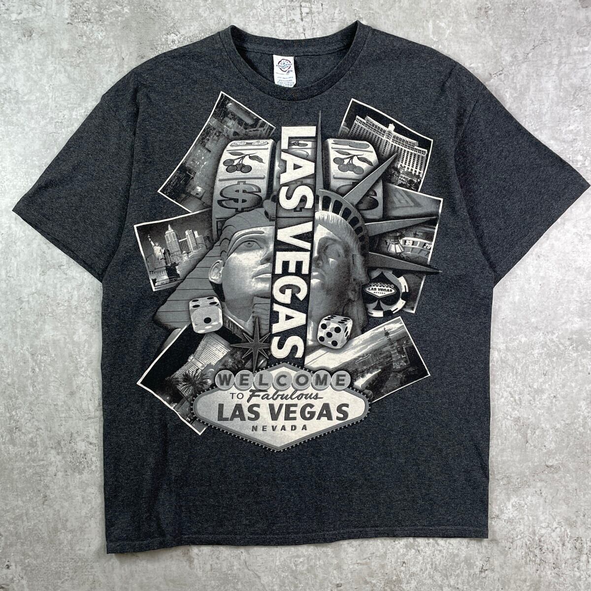 ■LAS VEGAS NEVADA カジノ プリントTシャツ メンズL相当 古着 ラスベガス サイコロ スロット 黒色【Tシャツ】/ブラック