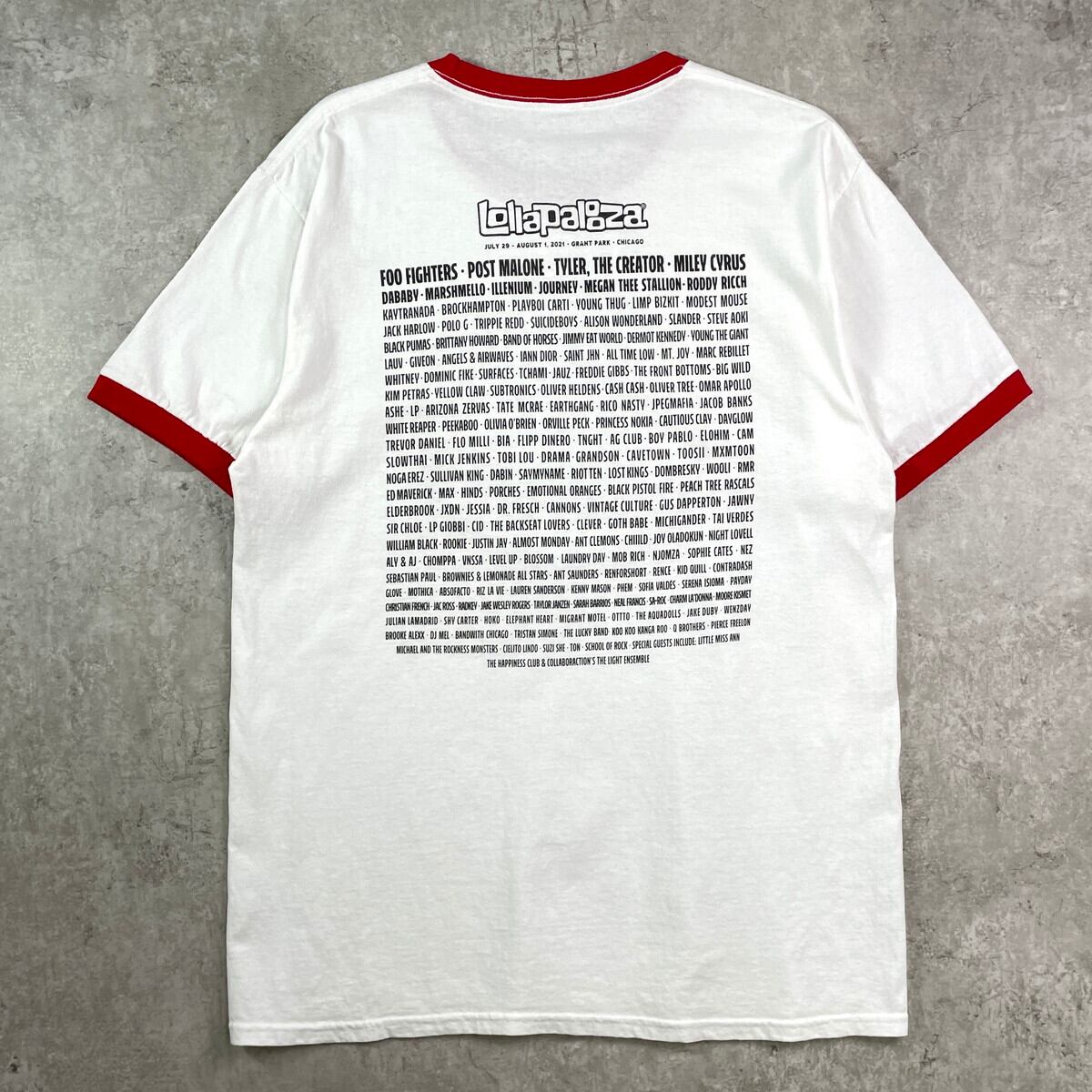 LOLLAPALOOZA Chicago リンガーTシャツ フェスT メンズL 古着 ロラパルーザ ミュージックフェス バンド アーティスト レッド×ホワイト【Tシャツ】/ホワイト