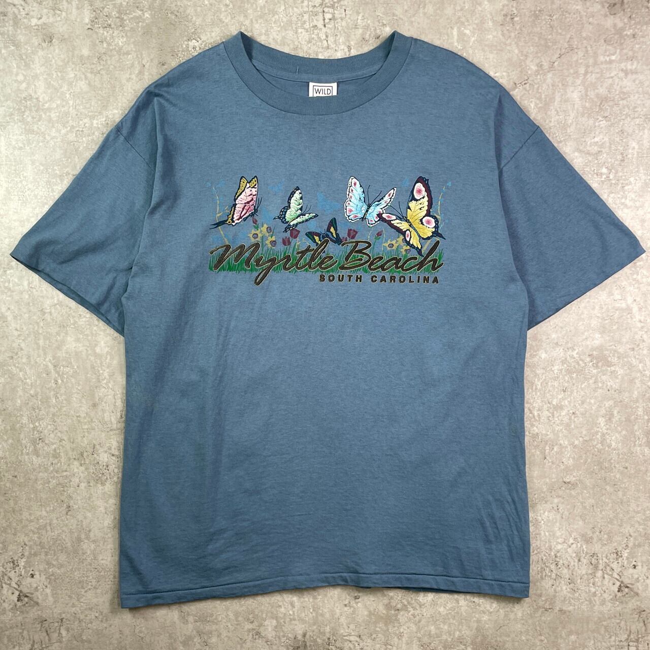 90年代 USA製 MYRTLE BEACH スーベニア プリントTシャツ アート メンズXL 古着 90s ヴィンテージ VINTAGE シングルステッチ 青色【Tシャツ】/ブルー