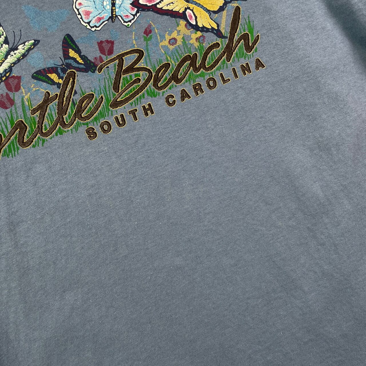 ■90年代 USA製 MYRTLE BEACH スーベニア プリントTシャツ アート メンズXL 古着 90s ヴィンテージ VINTAGE シングルステッチ 青色【Tシャツ】/ブルー
