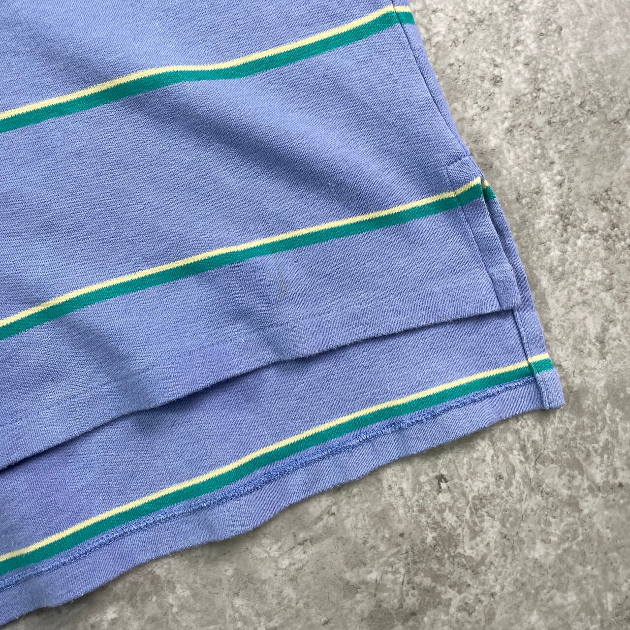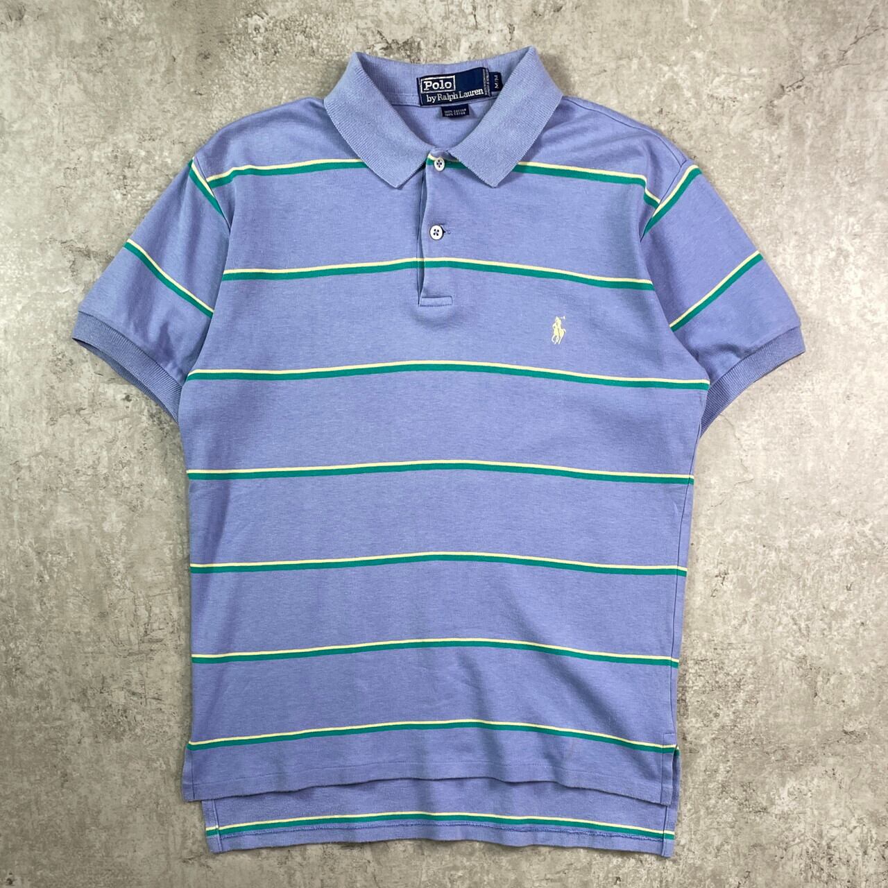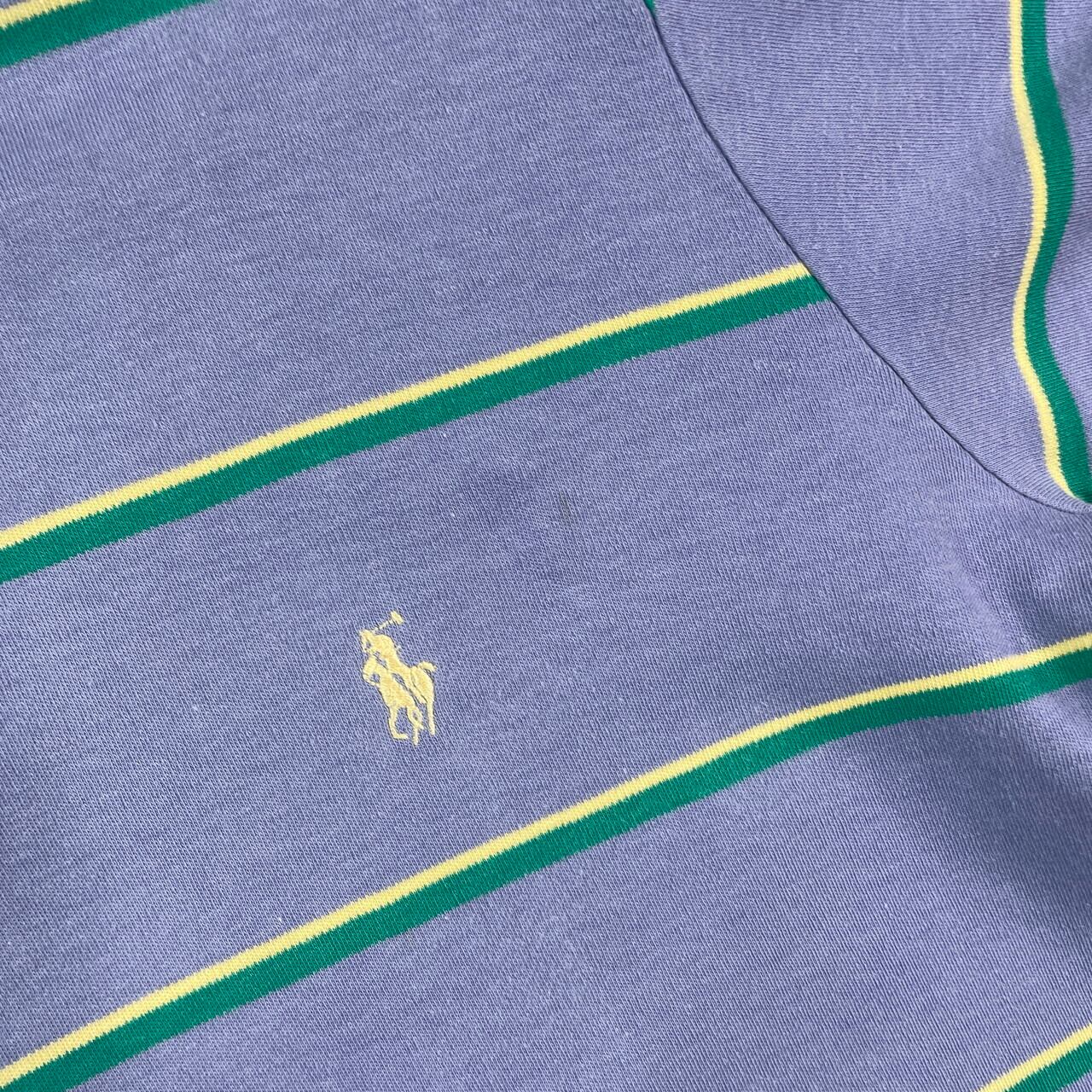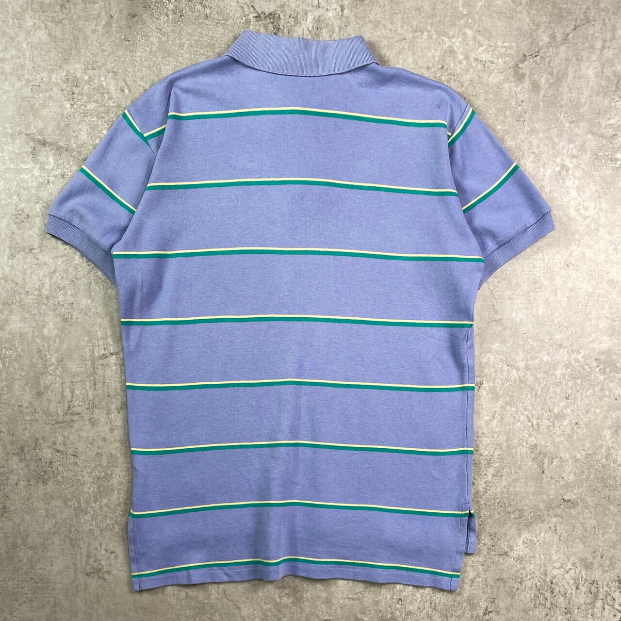 90年代 Polo by Ralph Lauren ポロバイラルフローレン ボーダー 半袖ポロシャツ メンズM 古着 90s VINTAGE ヴィンテージ ライトパープル グリーン イエロー 紫 緑 黄色【ポロシャツ・ラガーシャツ】/マルチカラー【SS50】