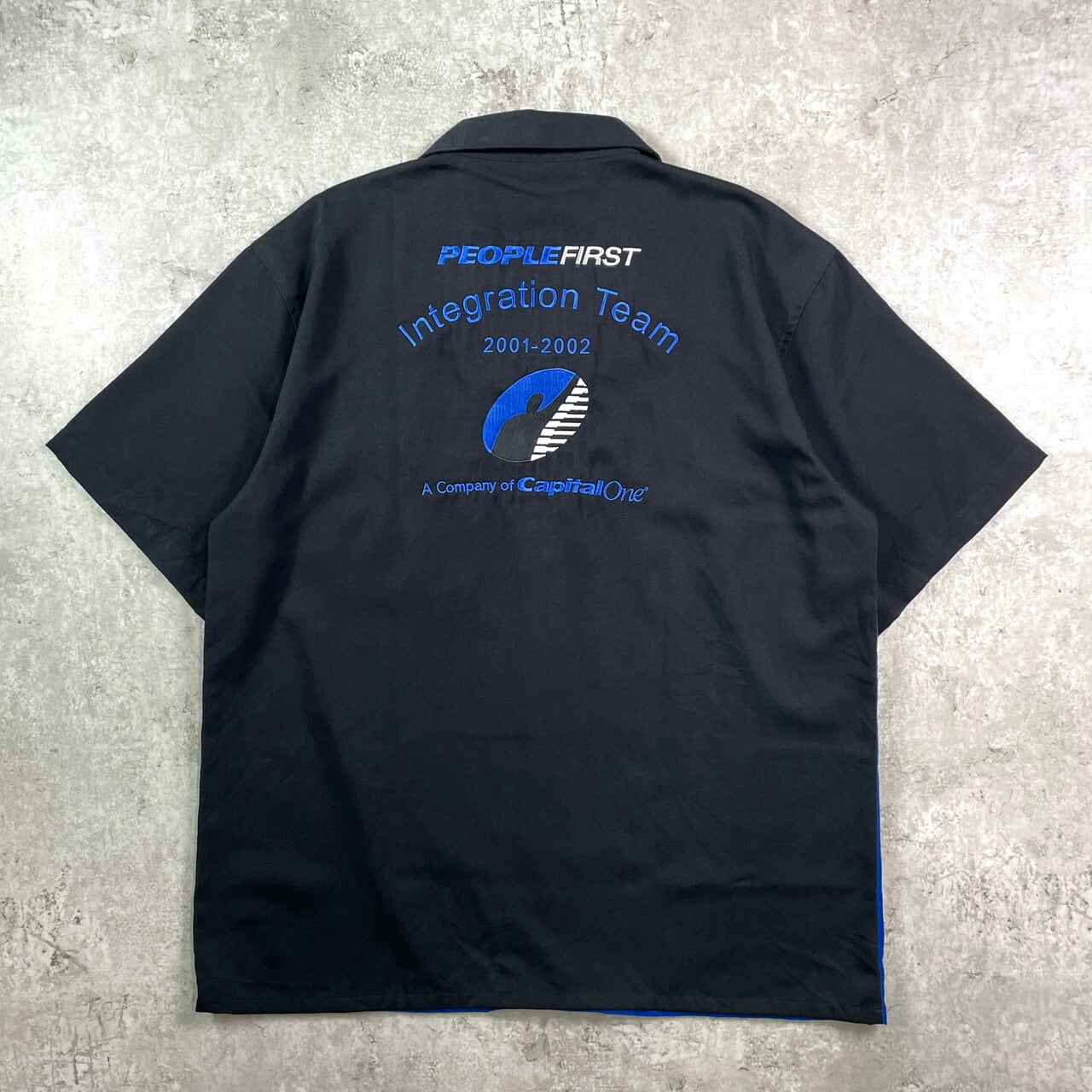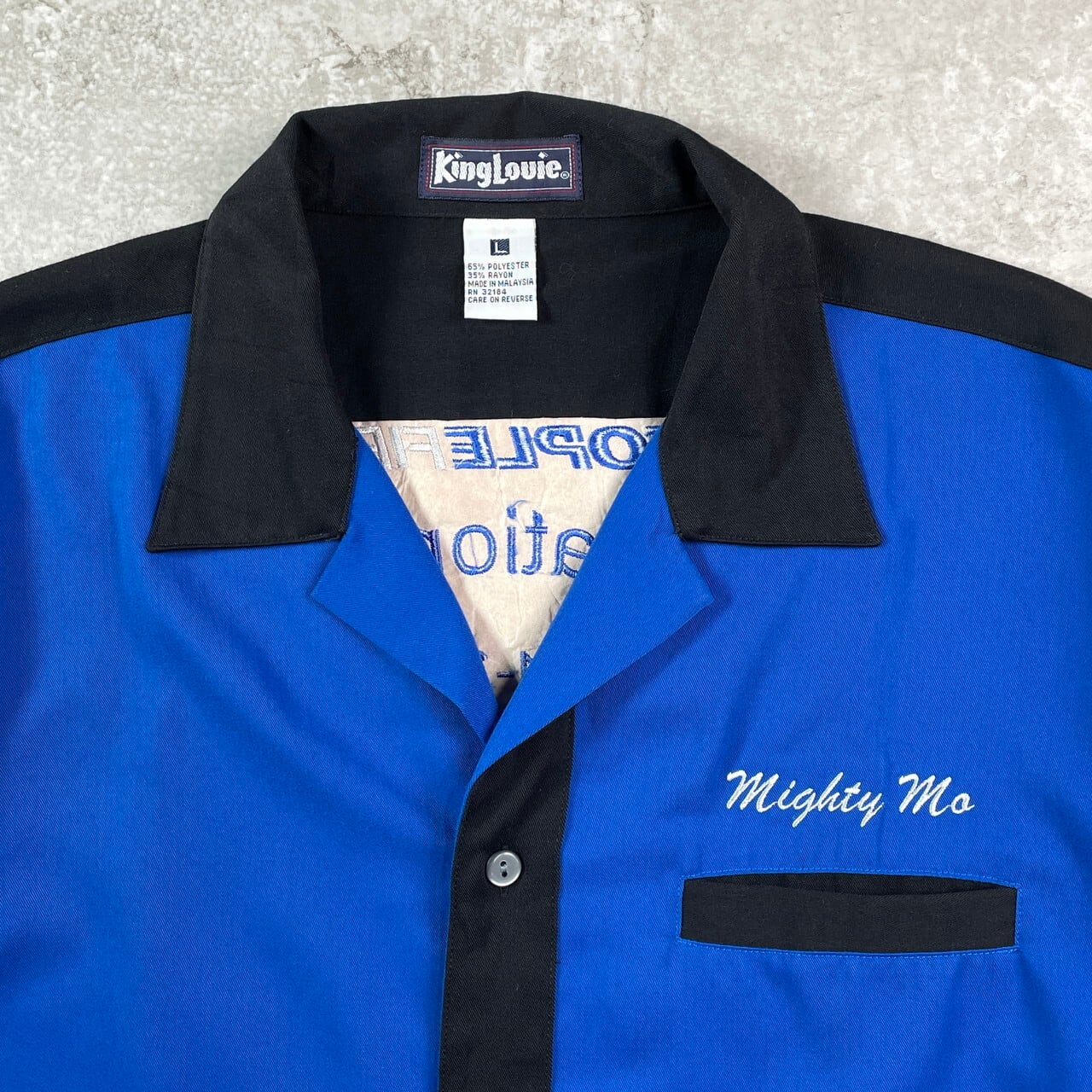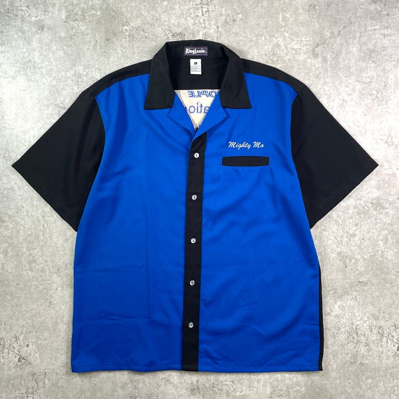■00年代 king Louie キングルイ 開襟 ボーリングシャツ メンズL 古着 00s VINTAGE ヴィンテージ オープンカラー バック刺繍 ブルー ブラック 青 黒【半袖シャツ】/マルチカラー