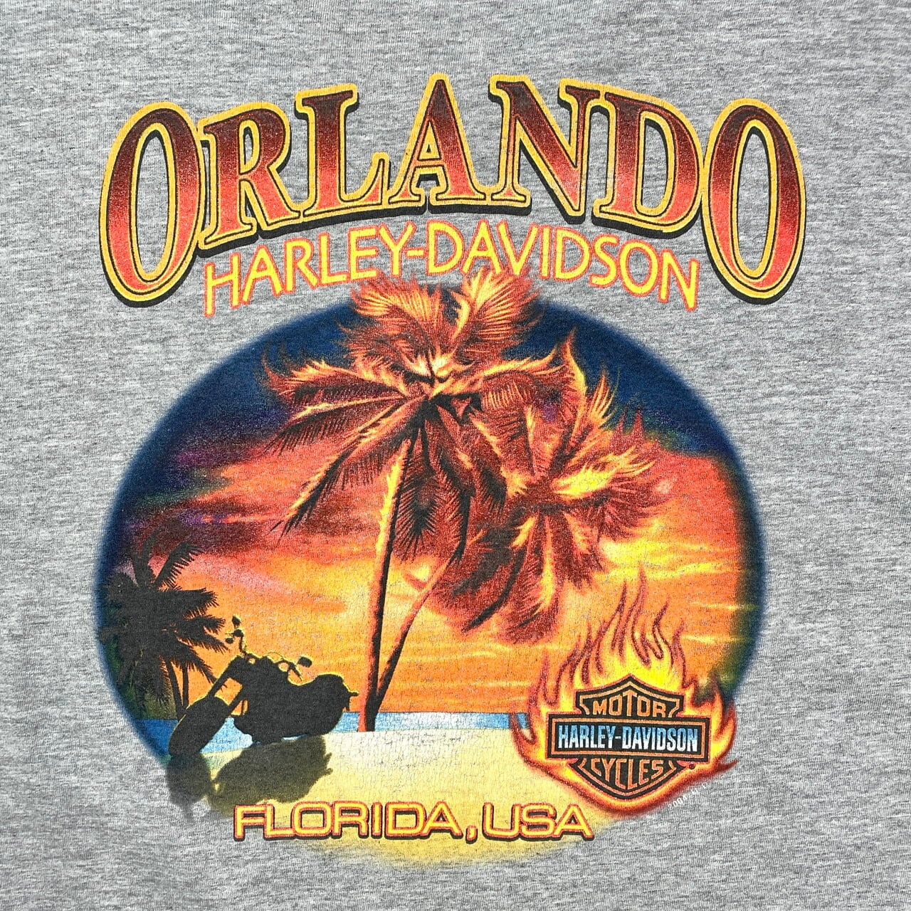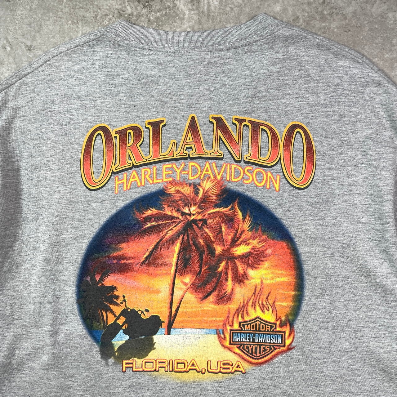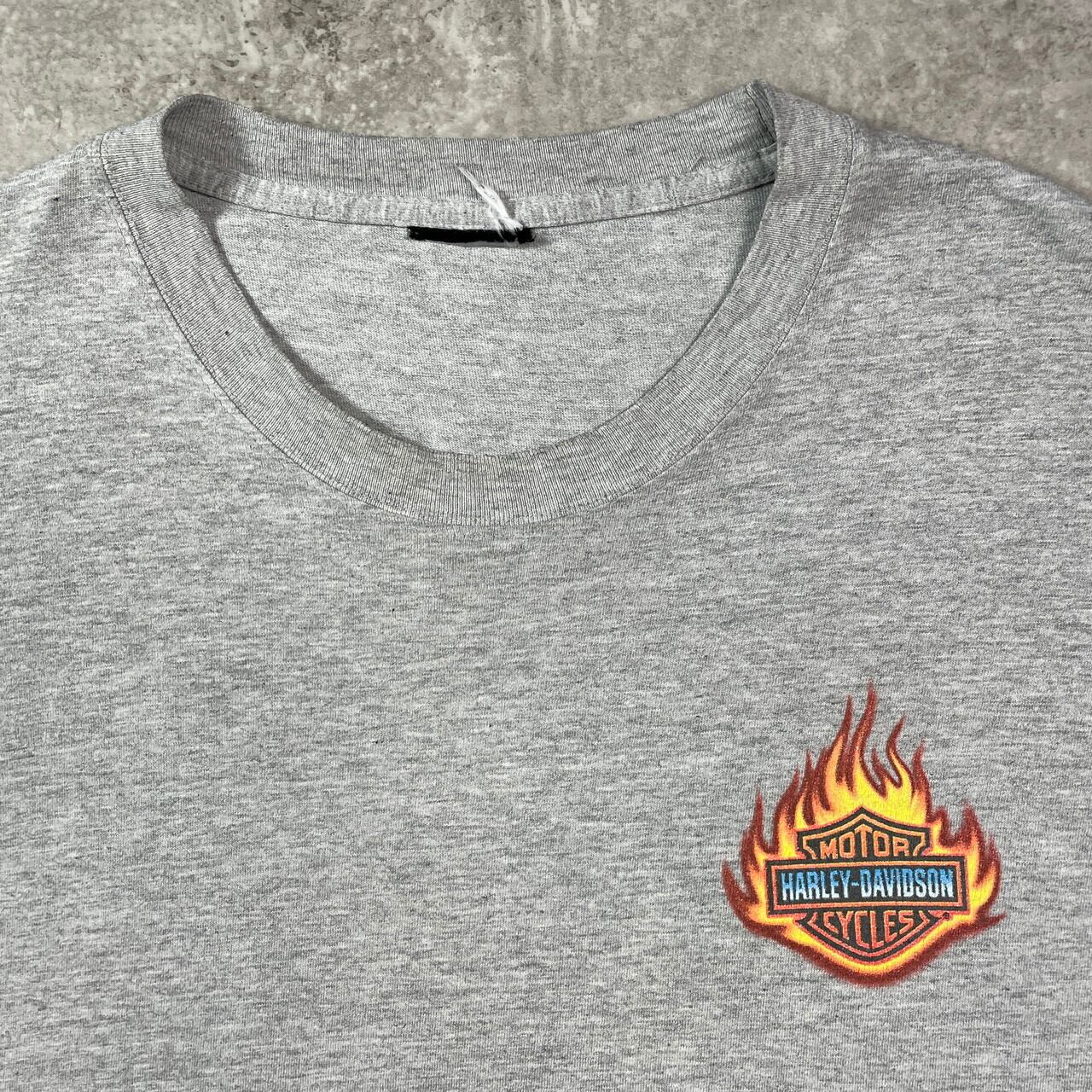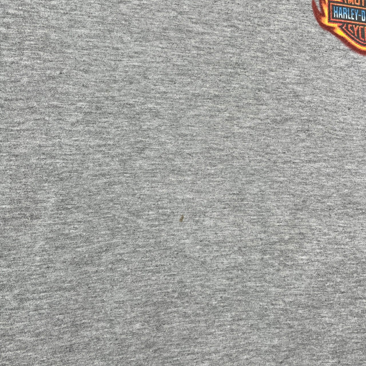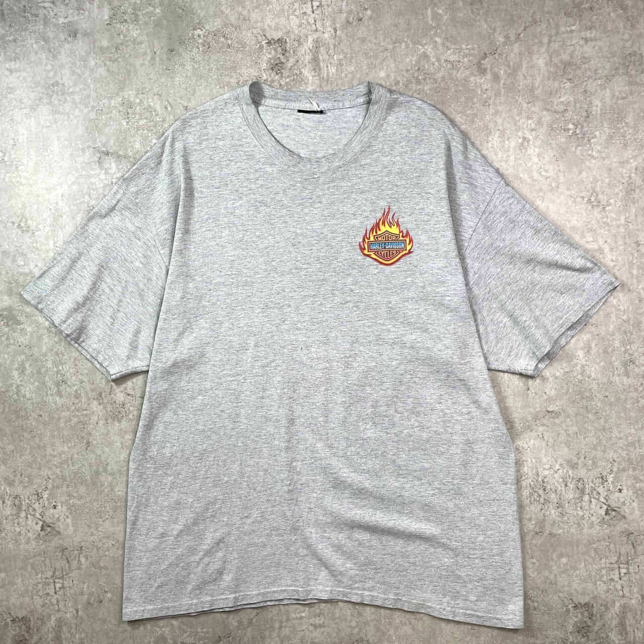 Harley-Davidson ハーレーダビッドソン ファイヤーパターン プリントTシャツ メンズ2XL相当 古着 モーターサイクル バイク 灰色【Tシャツ】/グレー【SS50】