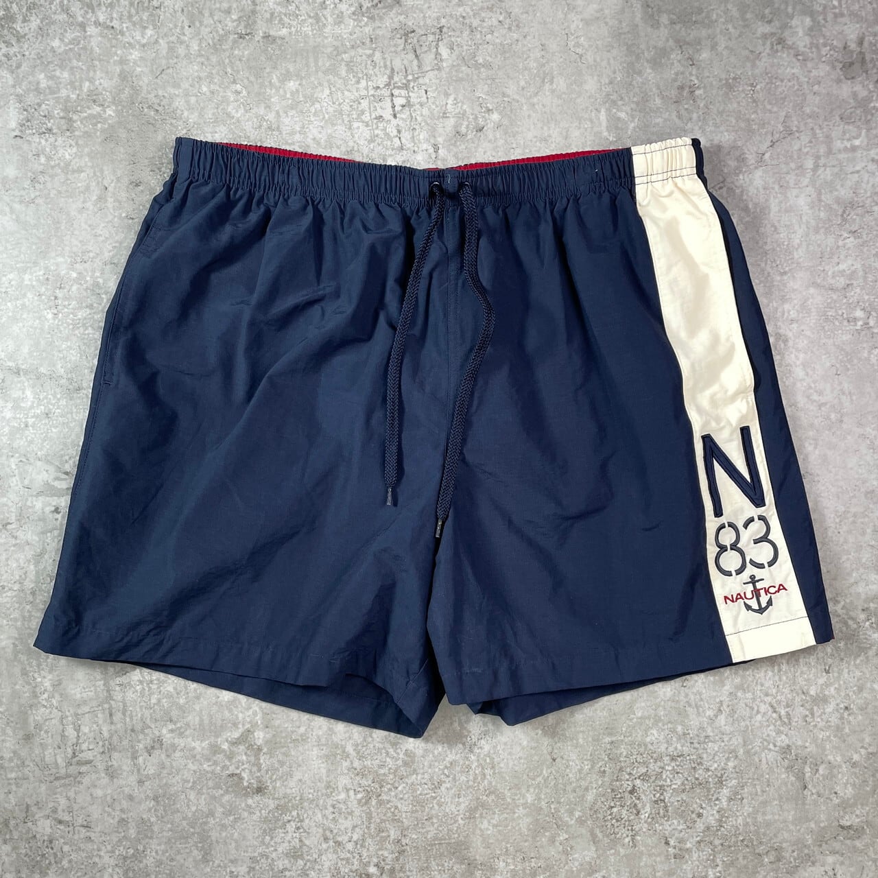 NAUTICA ノーティカ N83 スイムショーツ ナイロンショートパンツ メンズXL 古着 ハーフパンツ ホワイト レッド 白 赤 紺色【ショートパンツ】/ネイビー【SS50】