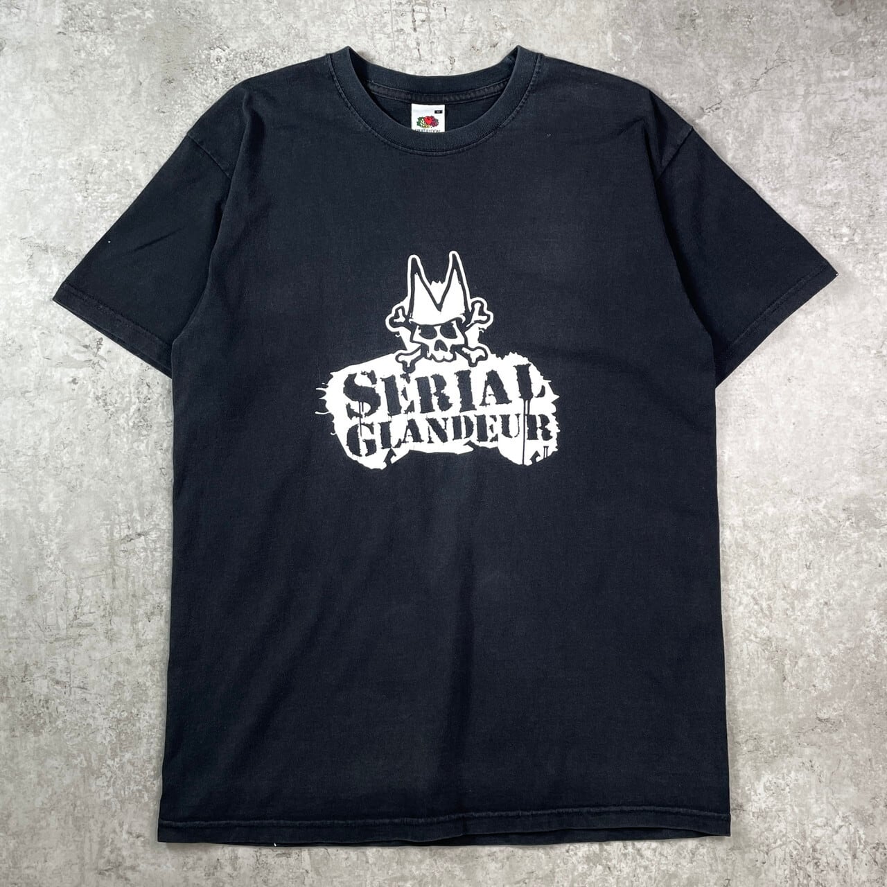 SERIAL GLANDEUR スカルボーン ジョーク メッセージ プリントTシャツ メンズM 古着 ファニー 黒色【Tシャツ】/ブラック【SS50】