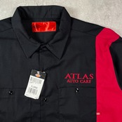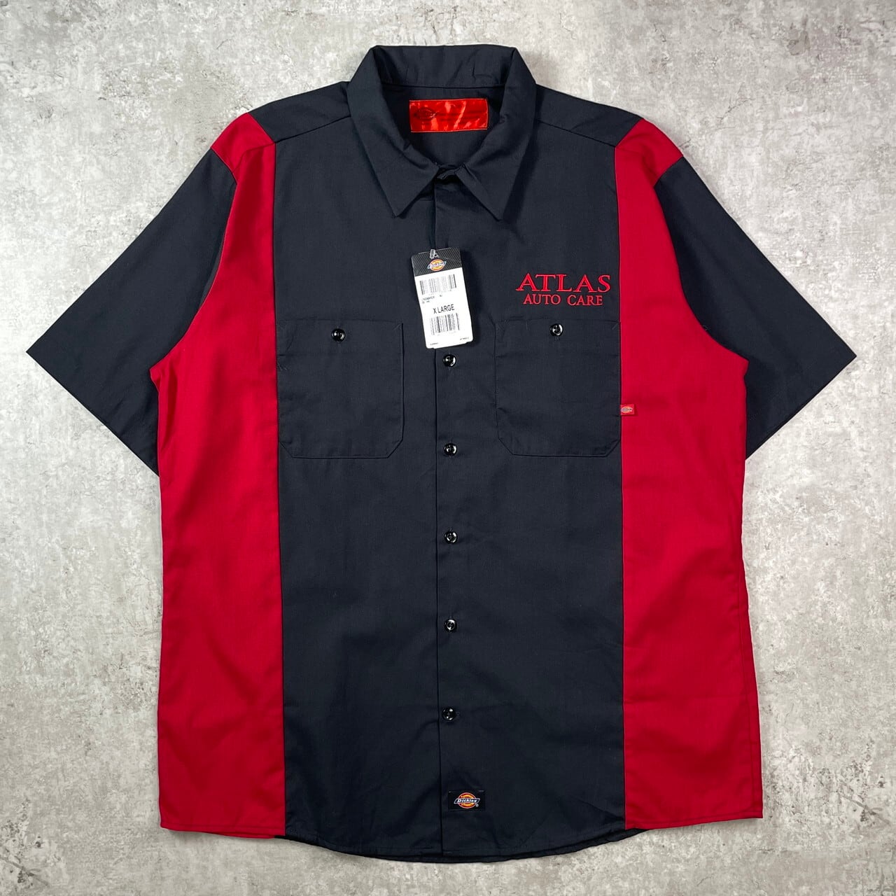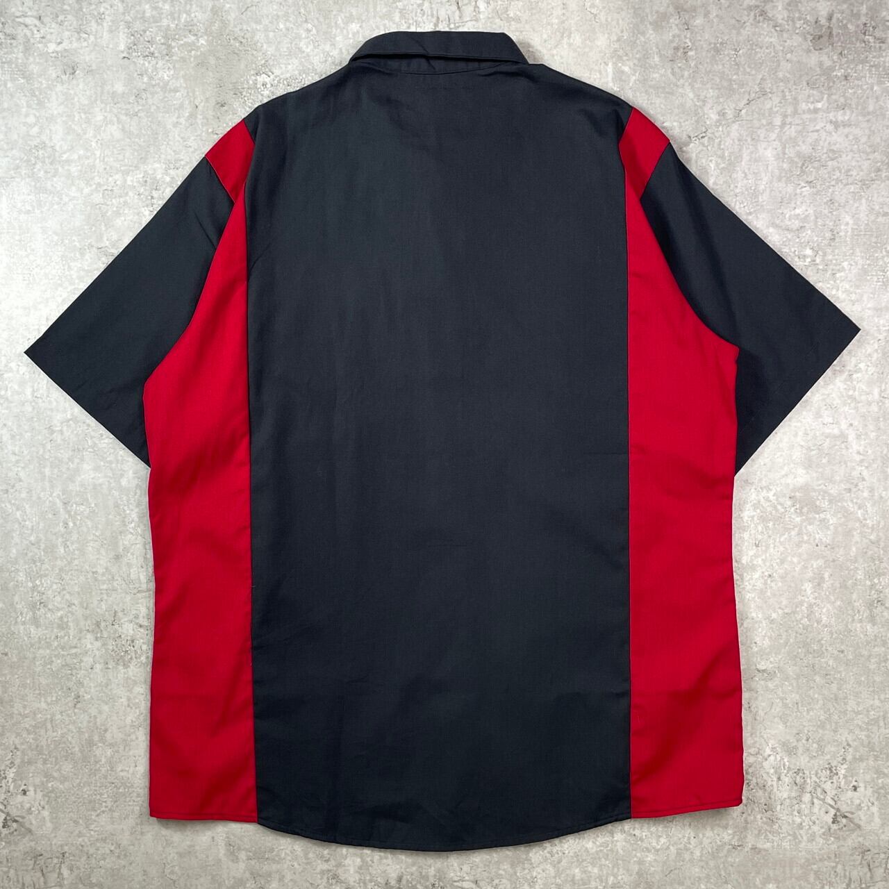 DEADSTOCK NOS Dickies ディッキーズ ツートンカラー 半袖ワークシャツ メンズXL 古着 バイカラー 企業ロゴ刺繍 デッドストック レッド 赤 黒【半袖シャツ】/ブラック【SS50】