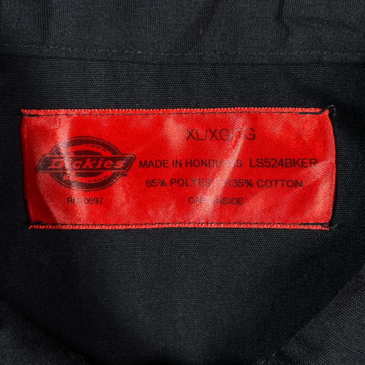 ■DEADSTOCK NOS Dickies ディッキーズ ツートンカラー 半袖ワークシャツ メンズXL 古着 バイカラー 企業ロゴ刺繍 デッドストック レッド 赤 黒【半袖シャツ】/ブラック