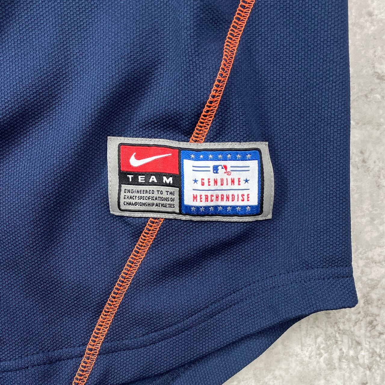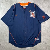 00年代 NIKE ナイキ MLB DETROIT TIGERS チーム ベースボールシャツ メンズXL 古着 00s VINTAGE ヴィンテージ デトロイト タイガース スウォッシュロゴ刺繍 メジャーリーグ ユニフォーム 紺色【ゲームシャツ】/ネイビー