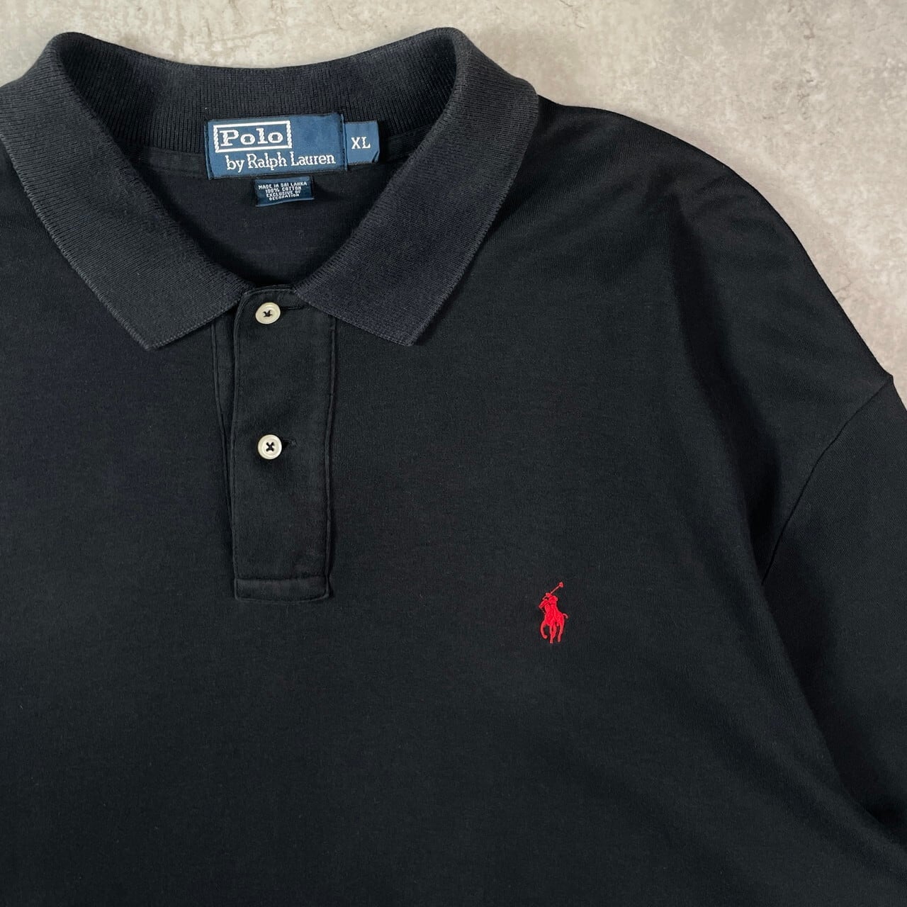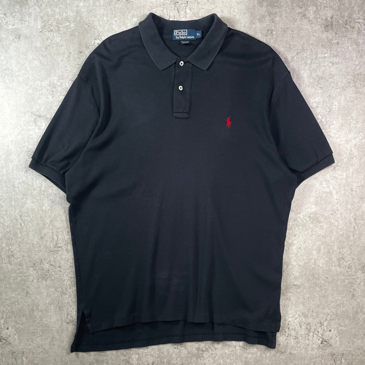 ■90年代 Polo by Ralph Lauren ポロバイラルフローレン 半袖ポロシャツ メンズ2XL相当 古着 90s VINTAGE ヴィンテージ ビッグサイズ 大きいサイズ 黒色【ポロシャツ・ラガーシャツ】/ブラック
