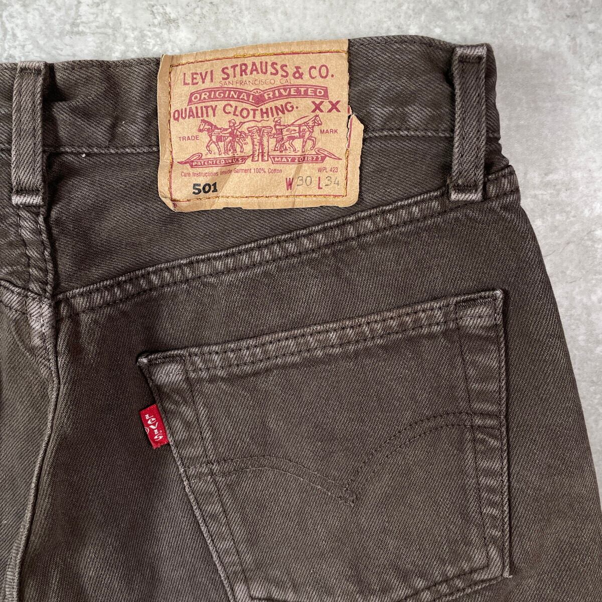 90年代 フランス製 Levi's ユーロリーバイス 501 ハーフパンツ ショーツ デニムパンツ ジーンズ メンズW30 レディース 古着 90s VINTAGE ヴィンテージ アメカジ カラーデニム ダークブラウン【デニムパンツ】/ブラウン【SS50】