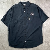 Columbia コロンビア 半袖 PHG ハンティングシャツ 企業ロゴ刺繍 メンズXL 古着 メッシュ切り替え ガンパッチ 黒色【半袖シャツ】/ブラック【SS50】