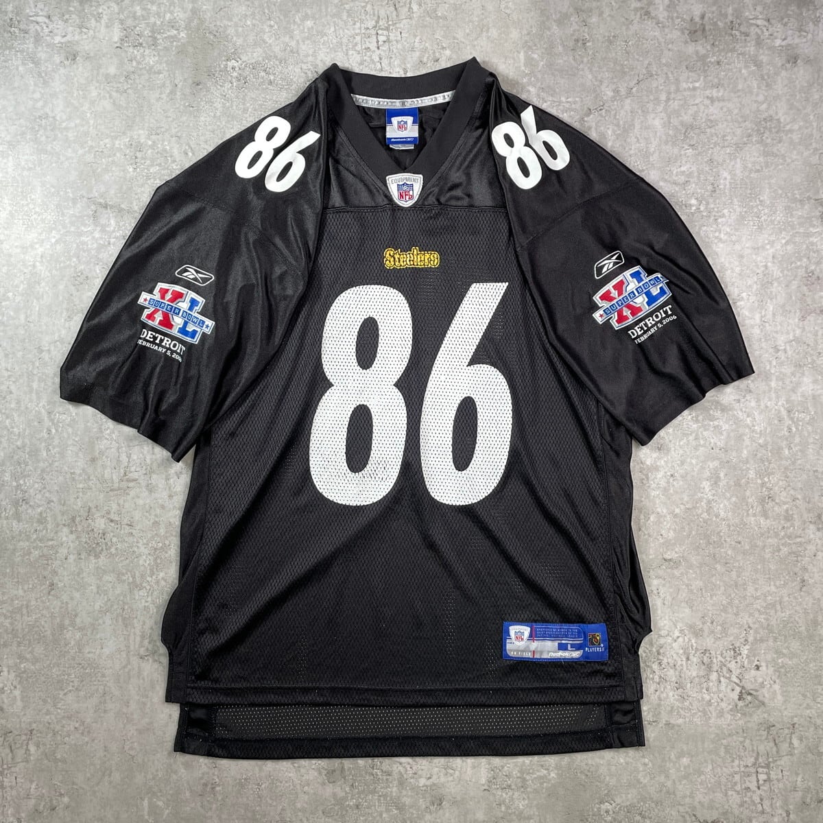 Reebok リーボック PITTSBURG STEELERS チーム フットボールシャツ メンズL 古着 NFL ピッツバーグ・スティーラーズ ユニフォーム ビッグサイズ 大きいサイズ ブラック×イエロー【ゲームシャツ】/ブラック【SS50】